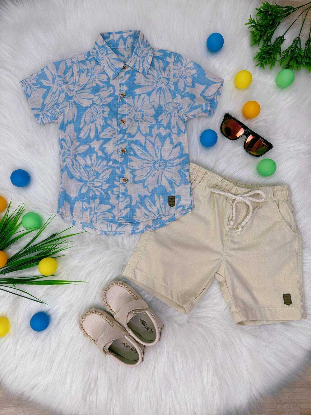 Conjunto Camisa Havaí e Short Com Cordão Marfim