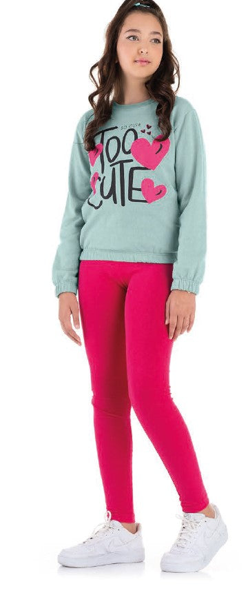 • Conjunto de Moletom Blusa Verde e Calça Pink Too Cute