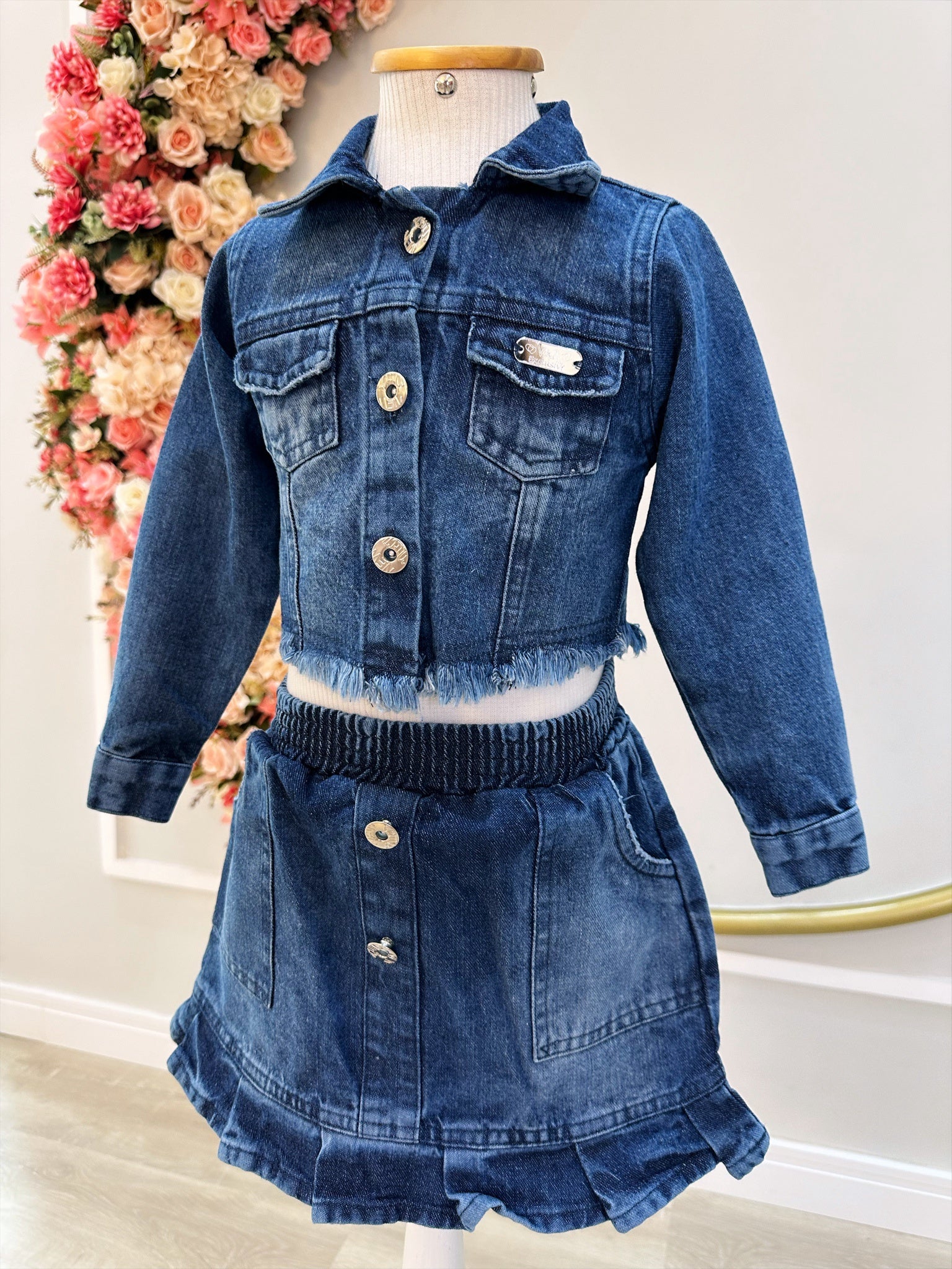 • Conjunto Infantil Jaqueta e Saia Jeans Azul Casual