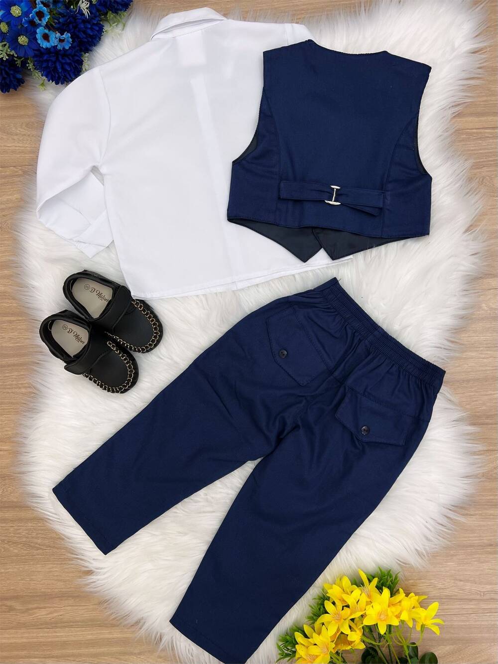 • Conjunto Social Calça Camisa Colete Gravata Azul Marinho