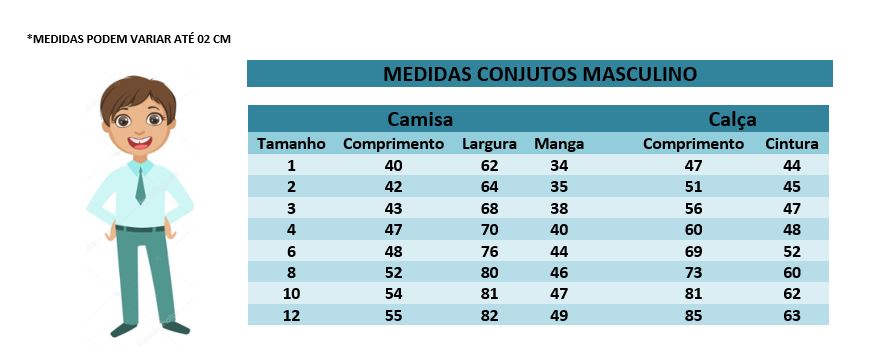 * Conjunto social infantil menino. Camisa em poliéster canelado. Calça em algodão, com elástico nas costas.