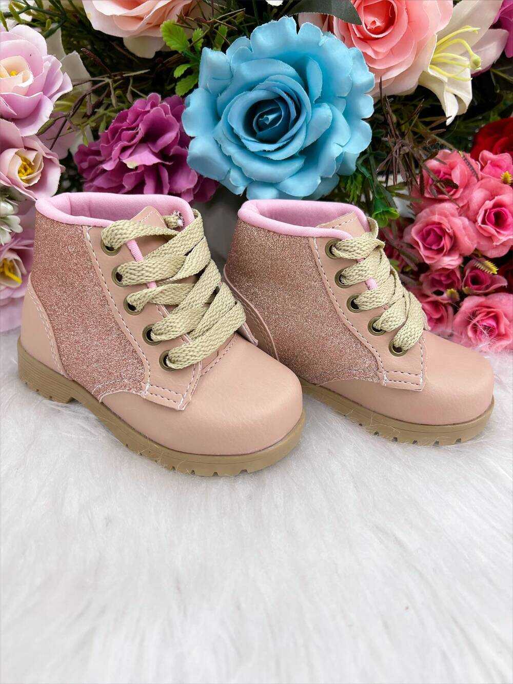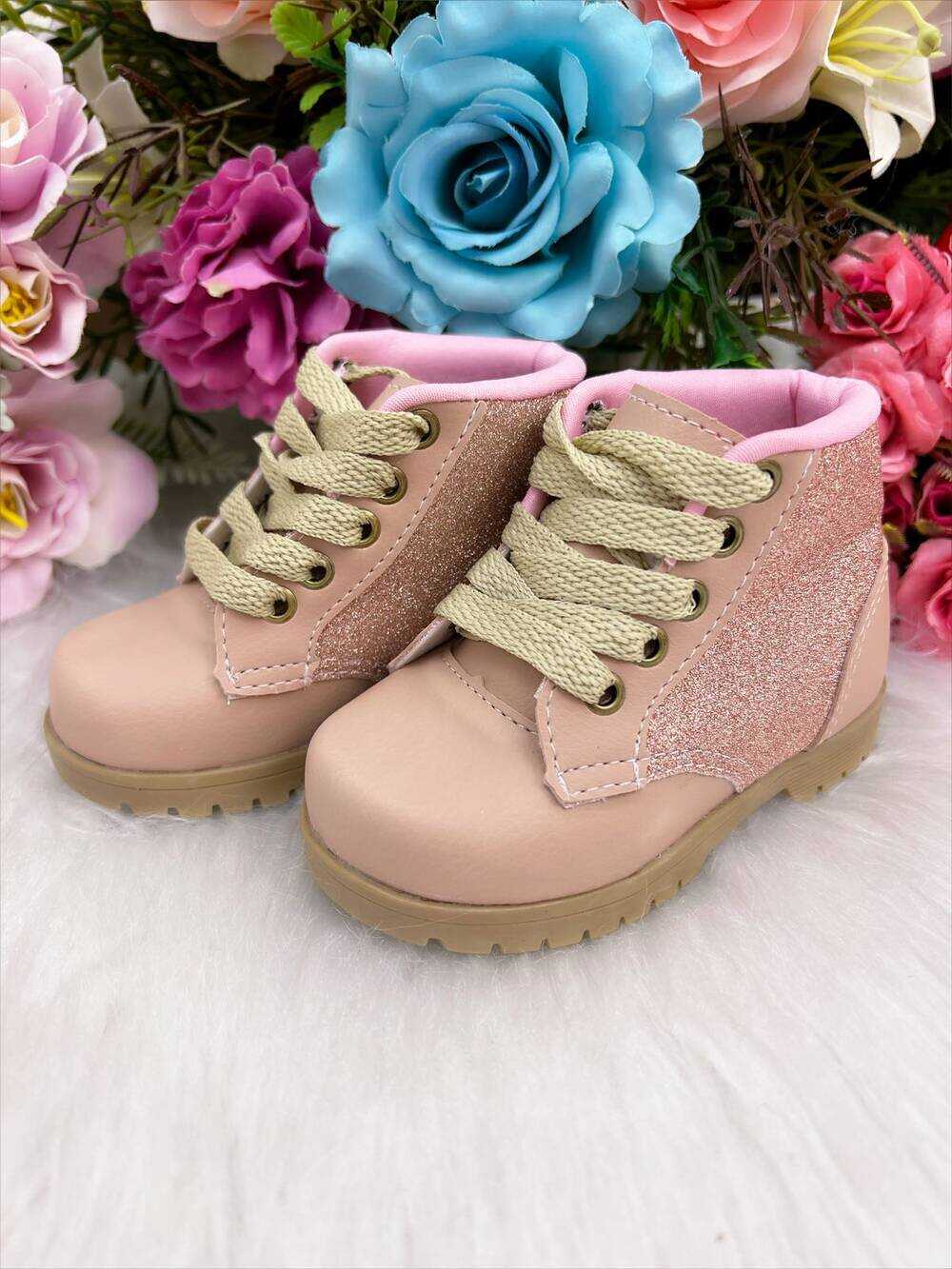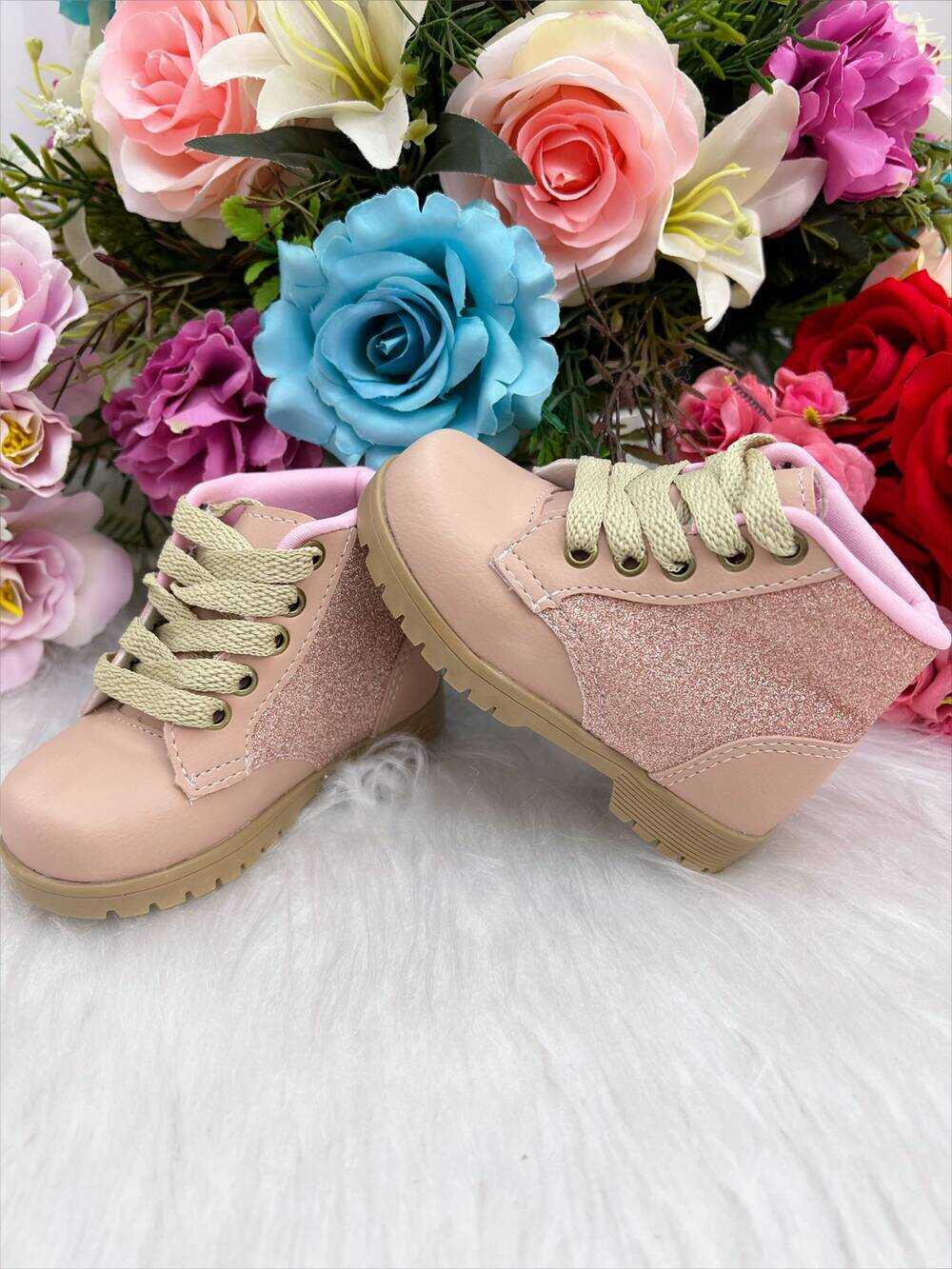 • Coturno Infantil Nude Com Brilho e Cadarço