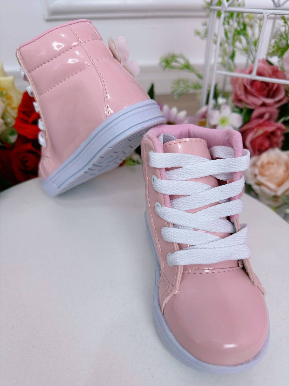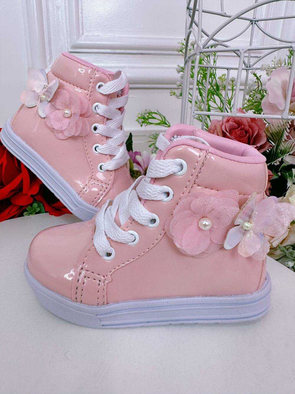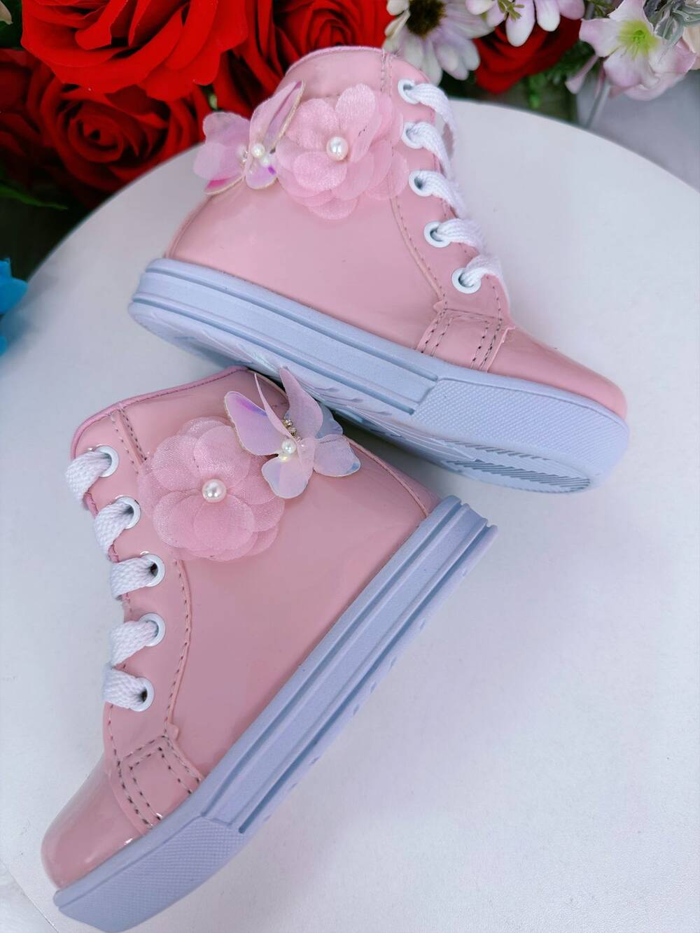 • Coturno Infantil Rosa Verniz C/ Cadarço Florzinha Borboleta
