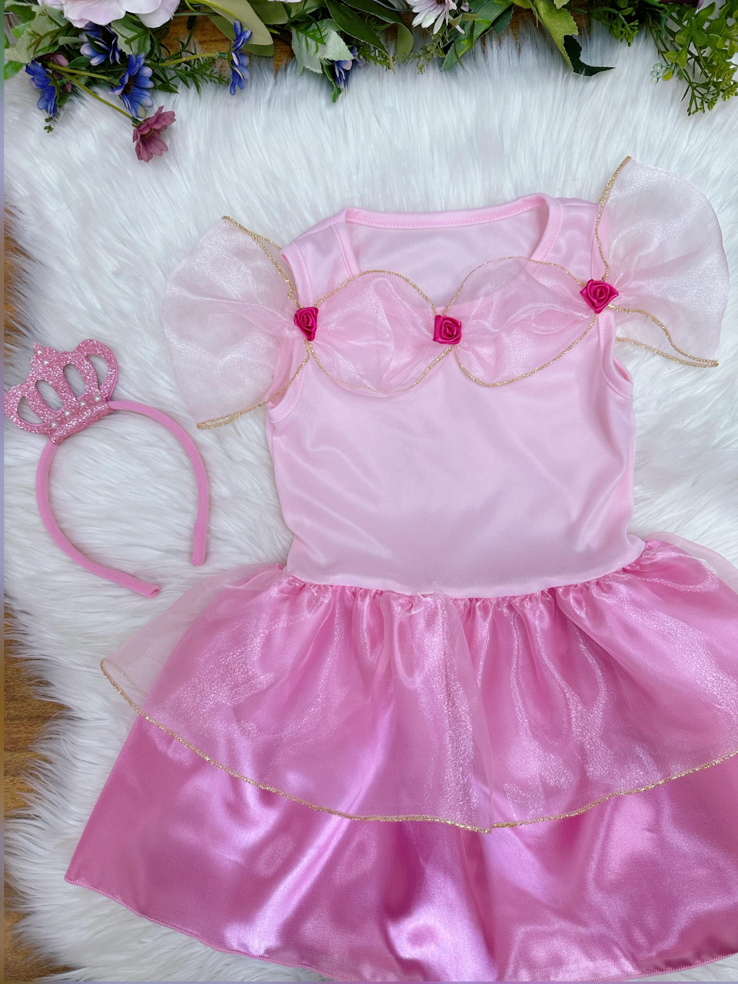 • Fantasia Infantil Aurora e Bela Adormecida Rosa Com Tiara