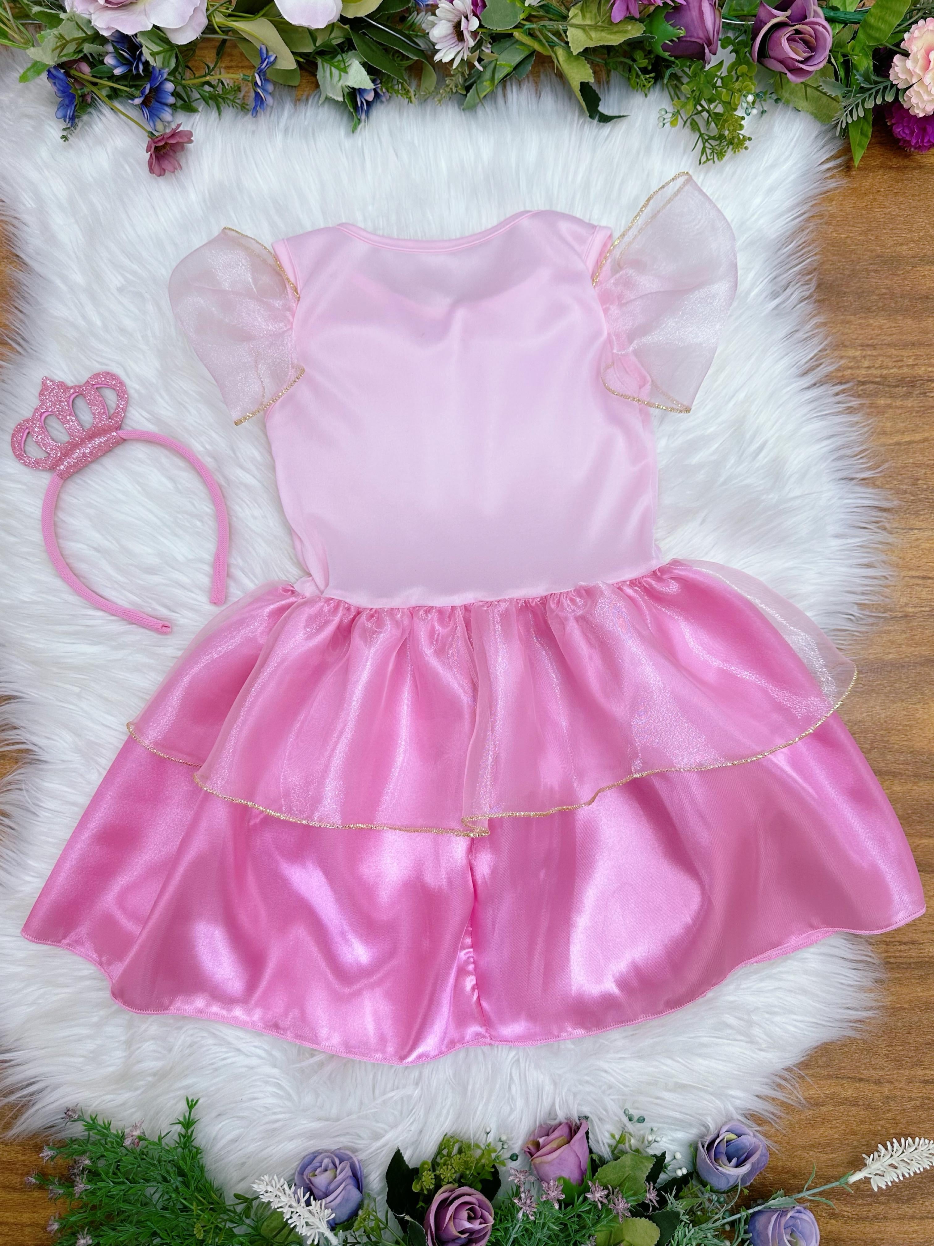 Fantasia Infantil Aurora e Bela Adormecida Rosa Com Tiara