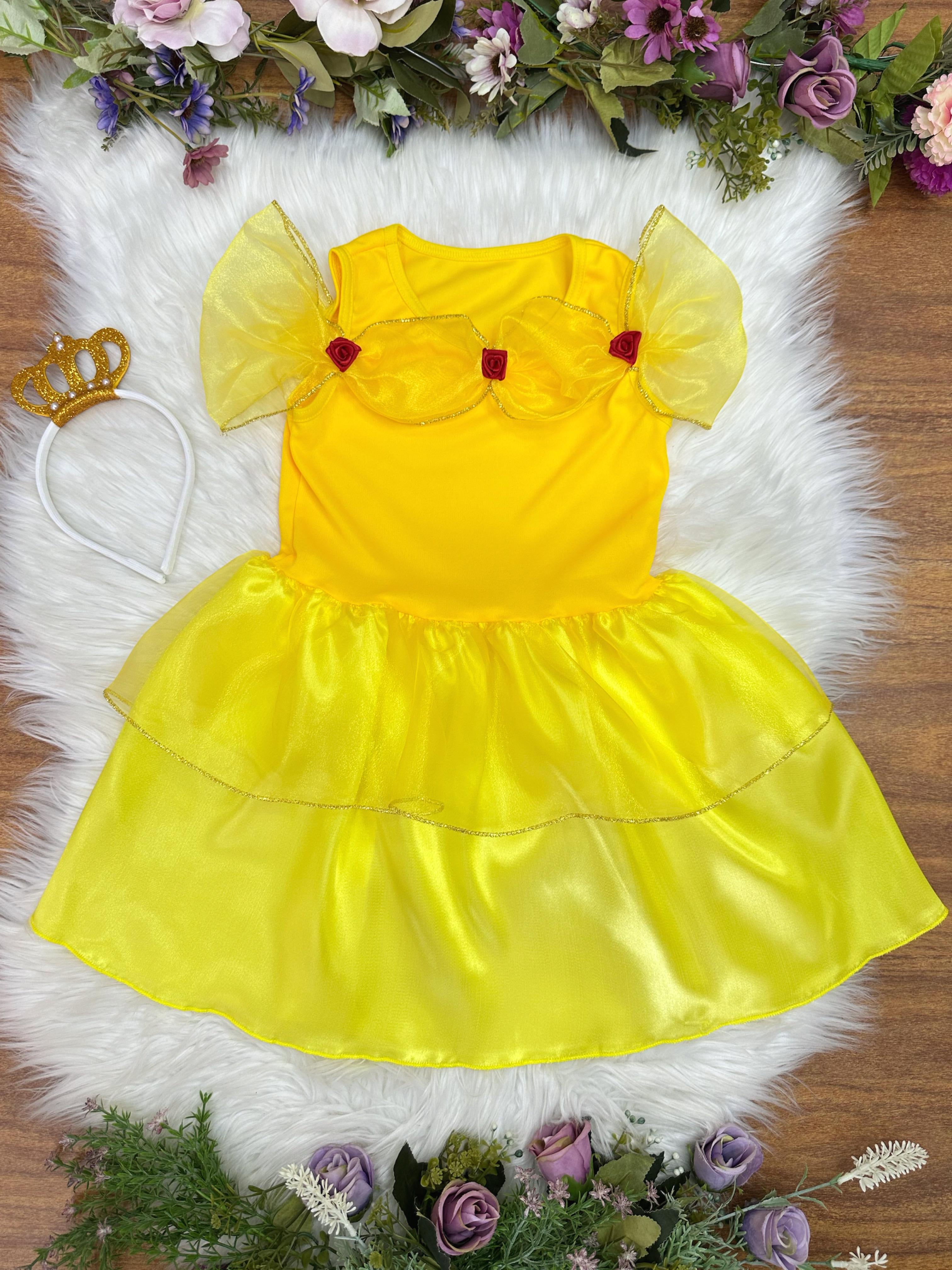 Fantasia Infantil Bela e a Fera Amarelo com Tiara
