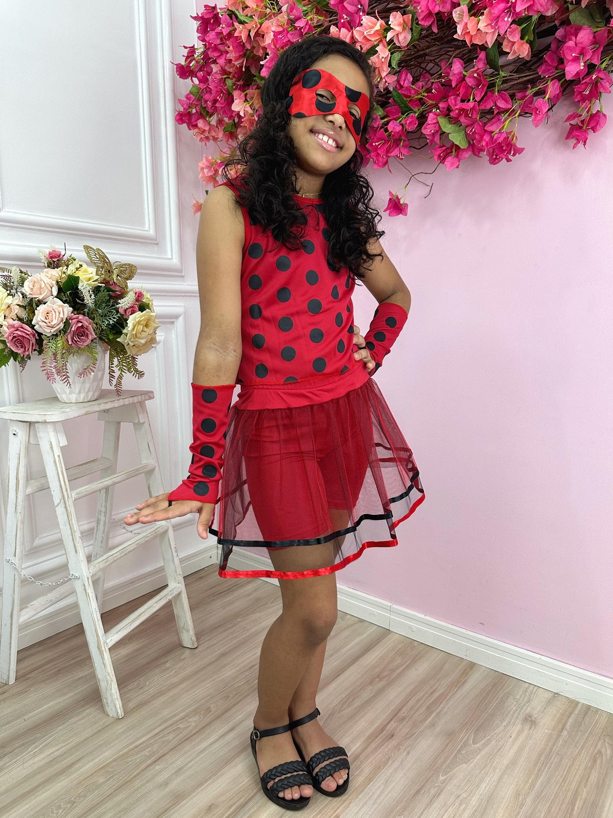 • Fantasia Infantil Joaninha Bolinhas com Máscara e Bracelete