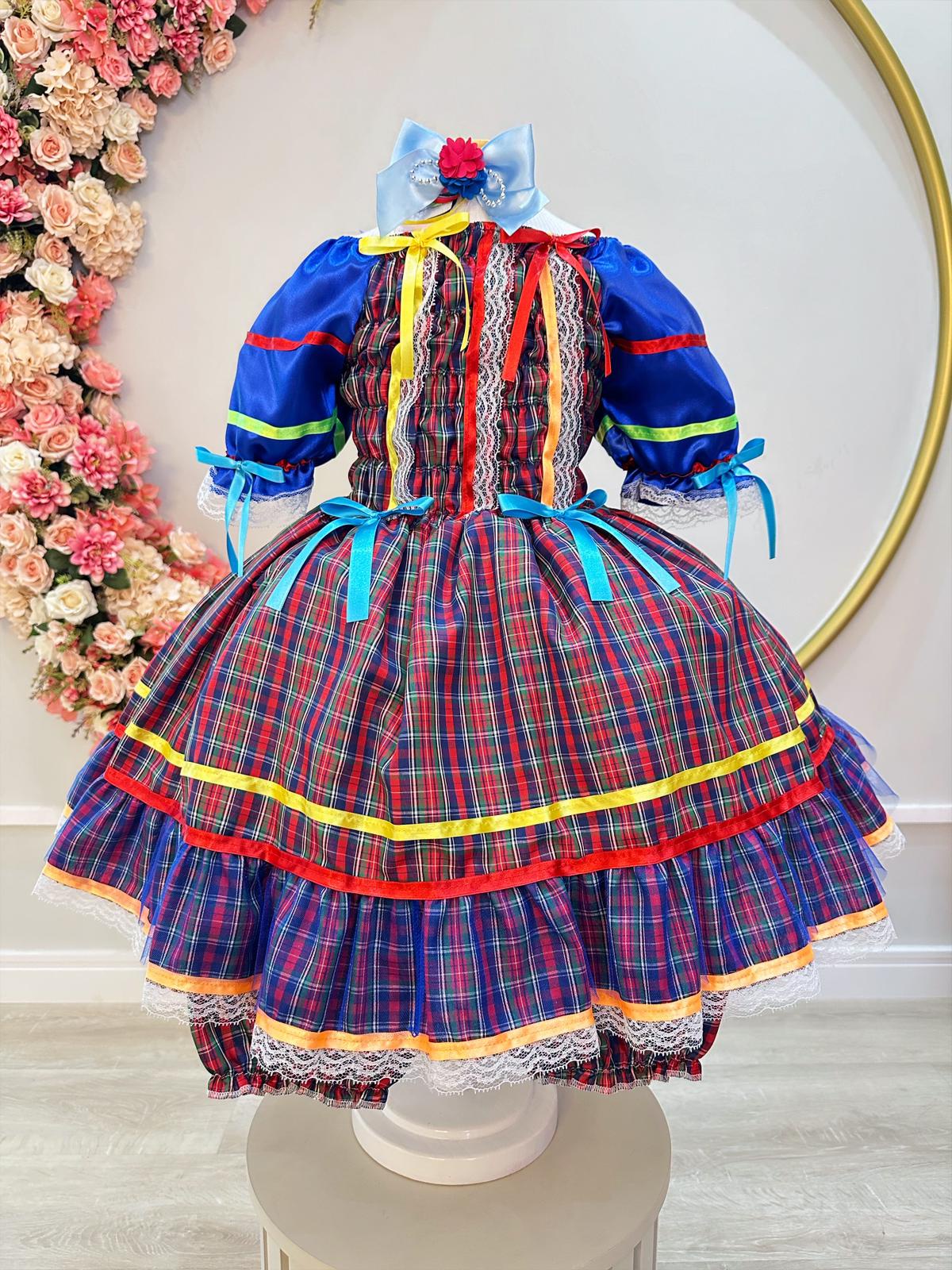 Fantasia Infantil Junino Arraiá Azul Xadrez Colorido