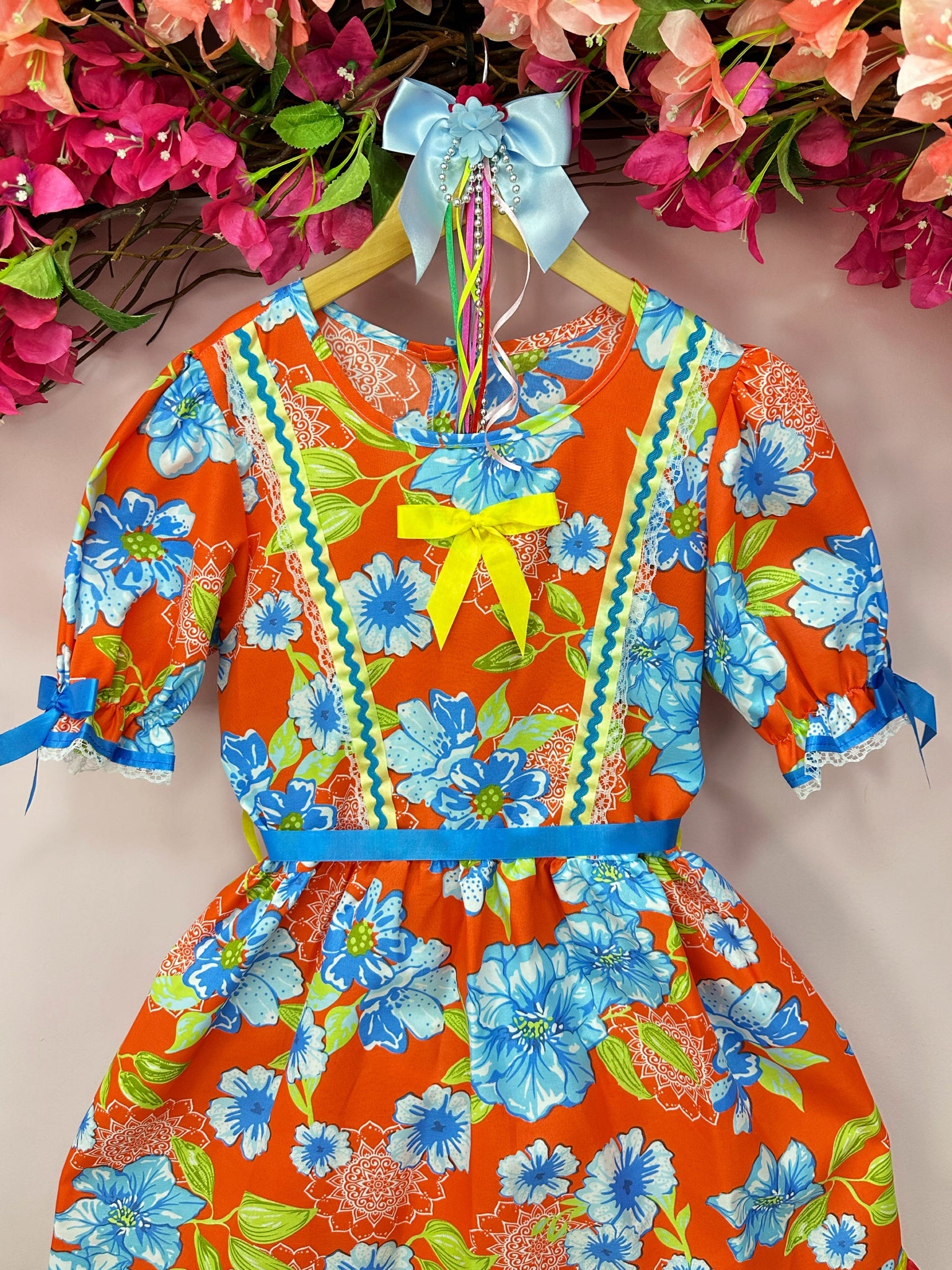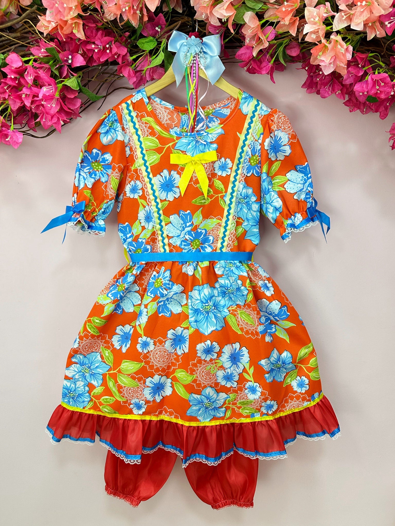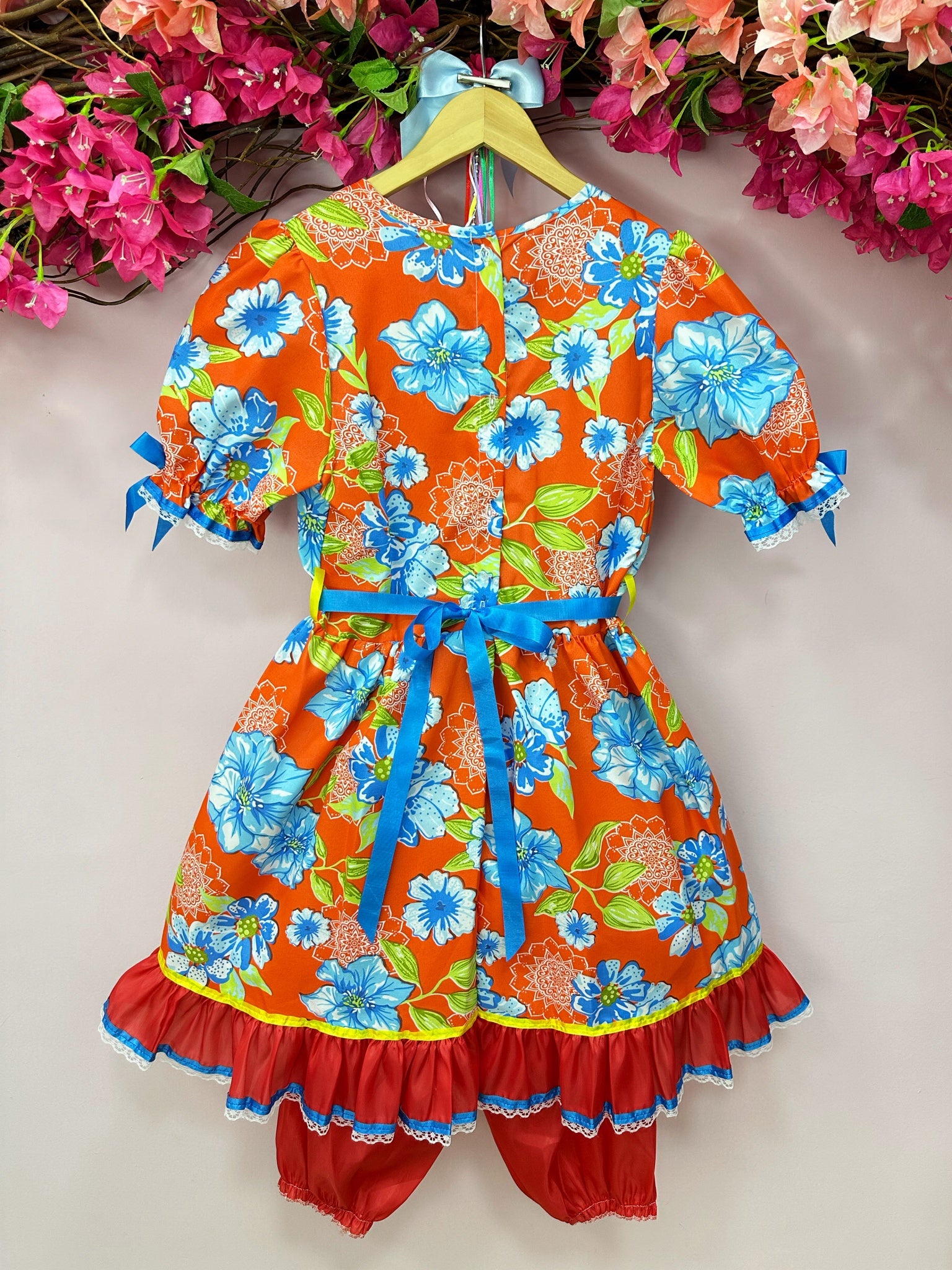 Fantasia Infantil Junino Arraiá Vermelho Com Estampa Colorida