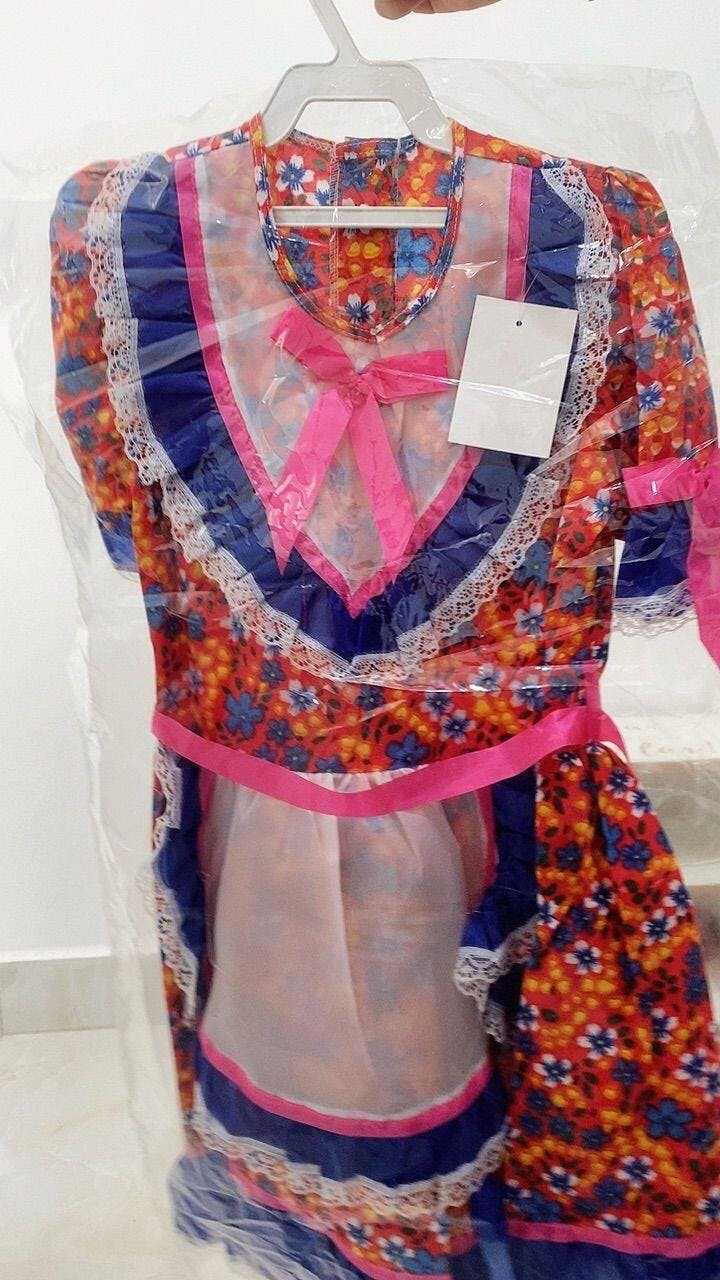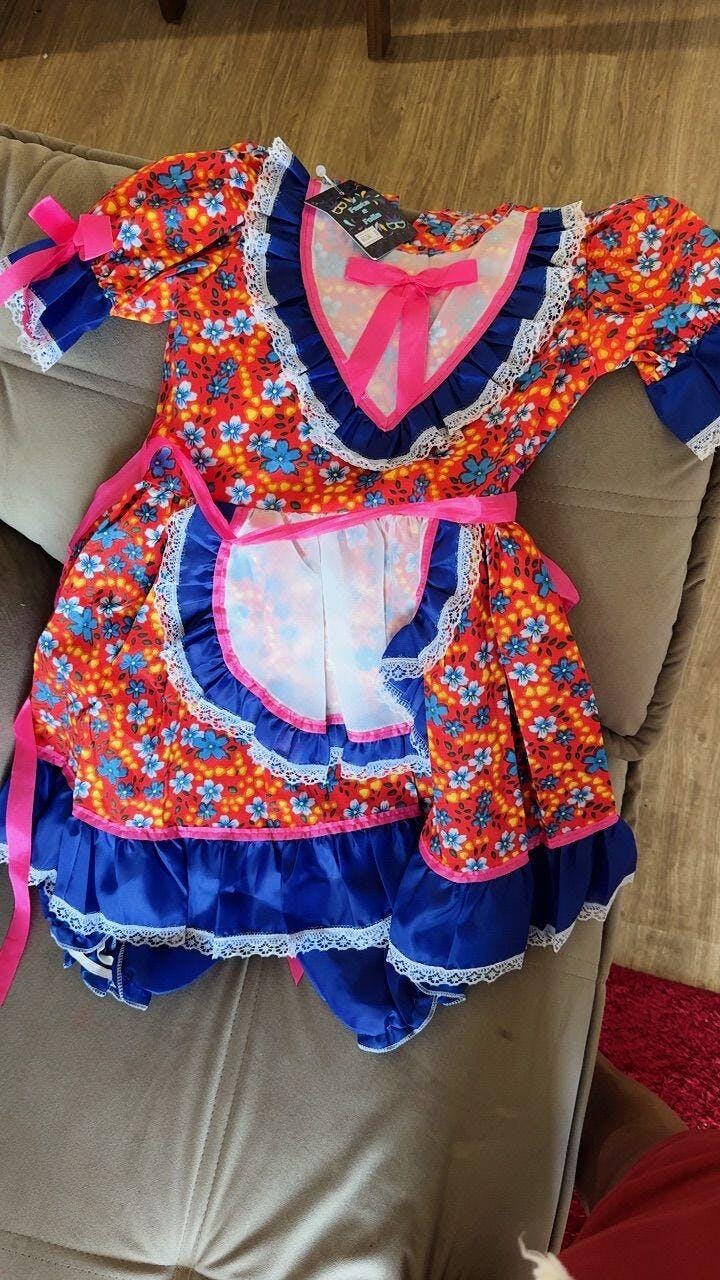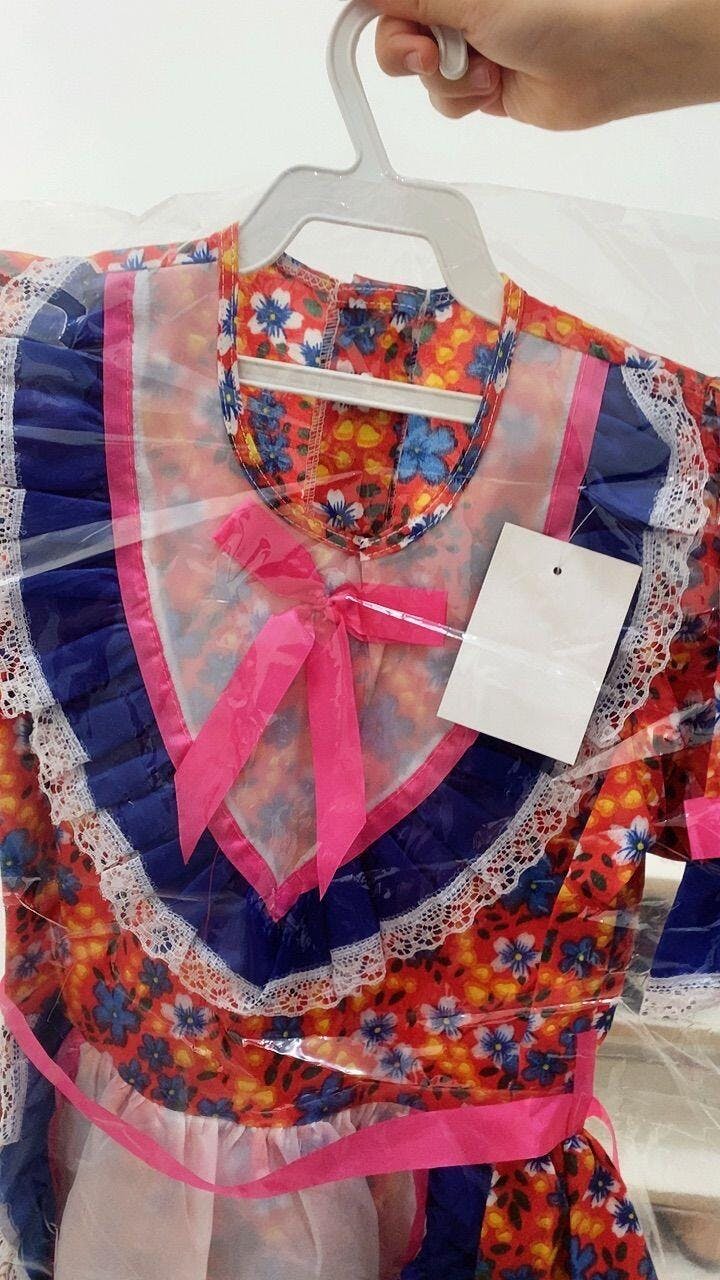 • Fantasia Infantil Junino Laranja Desenho Flores Coloridas