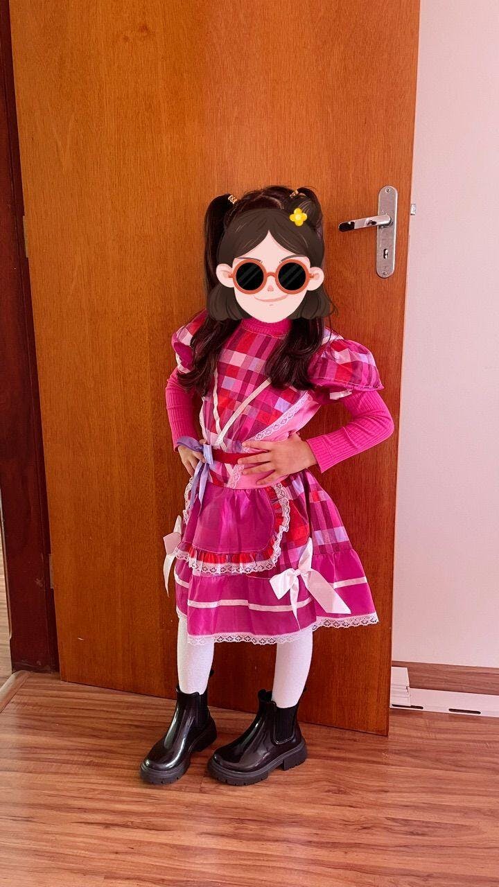 • Fantasia Infantil Junino Rosa e Xadrez Pink Colorido