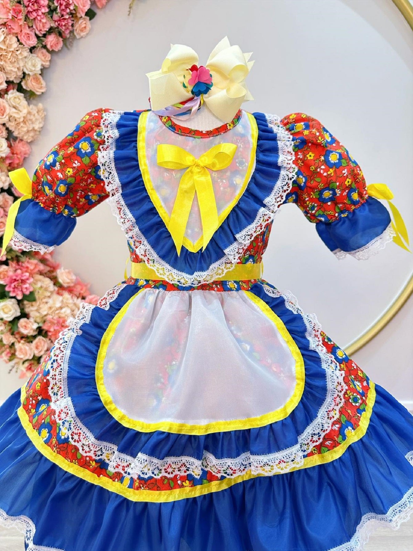 Fantasia Infantil Junino Vermelho Com Estampa de Florzinhas