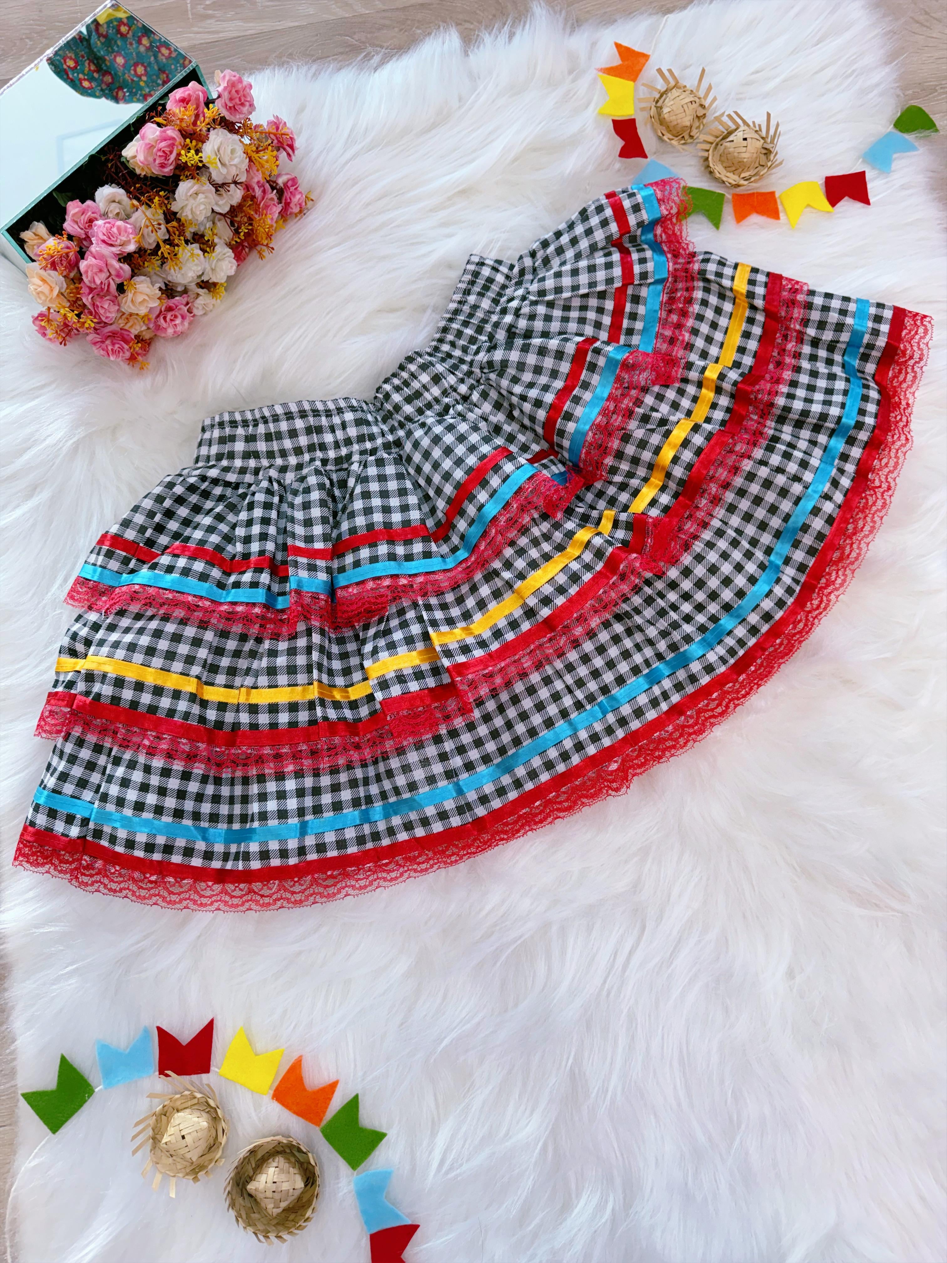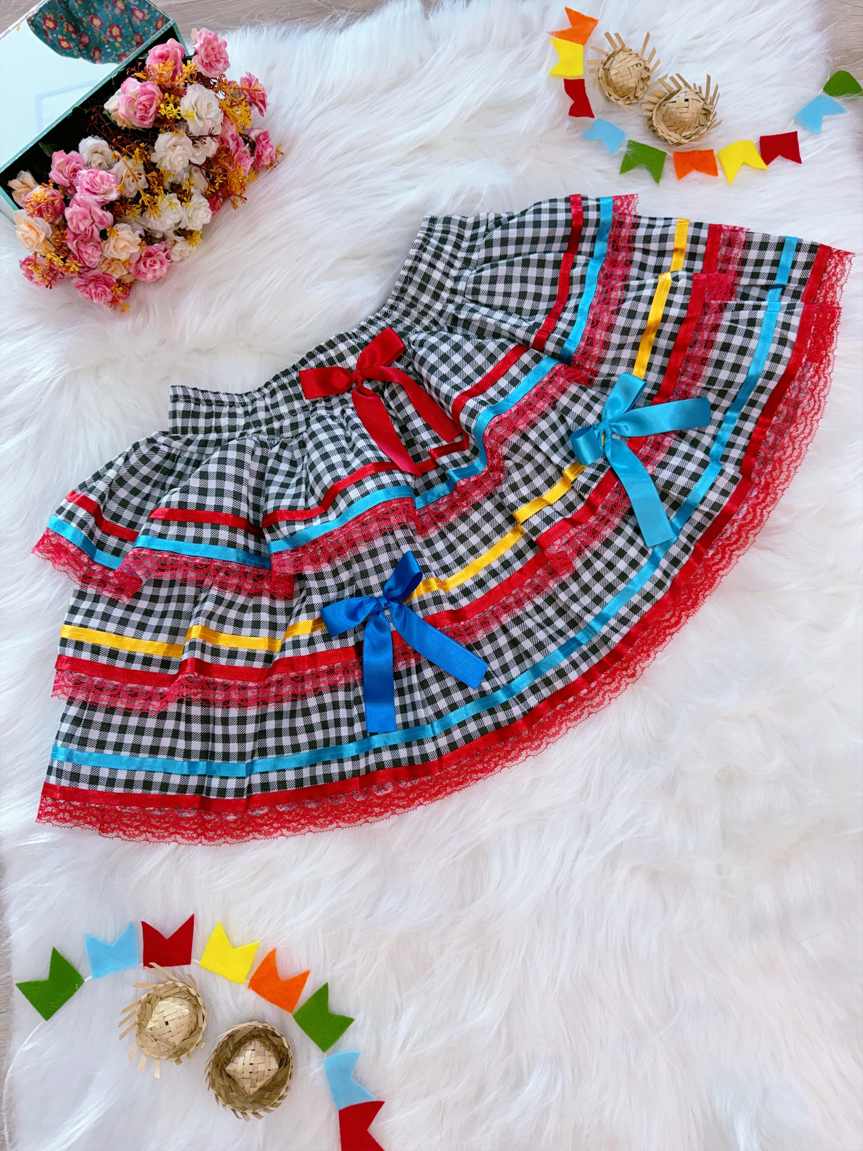 Fantasia Saia Adulto Junino Arraiá Preto Xadrez Festas