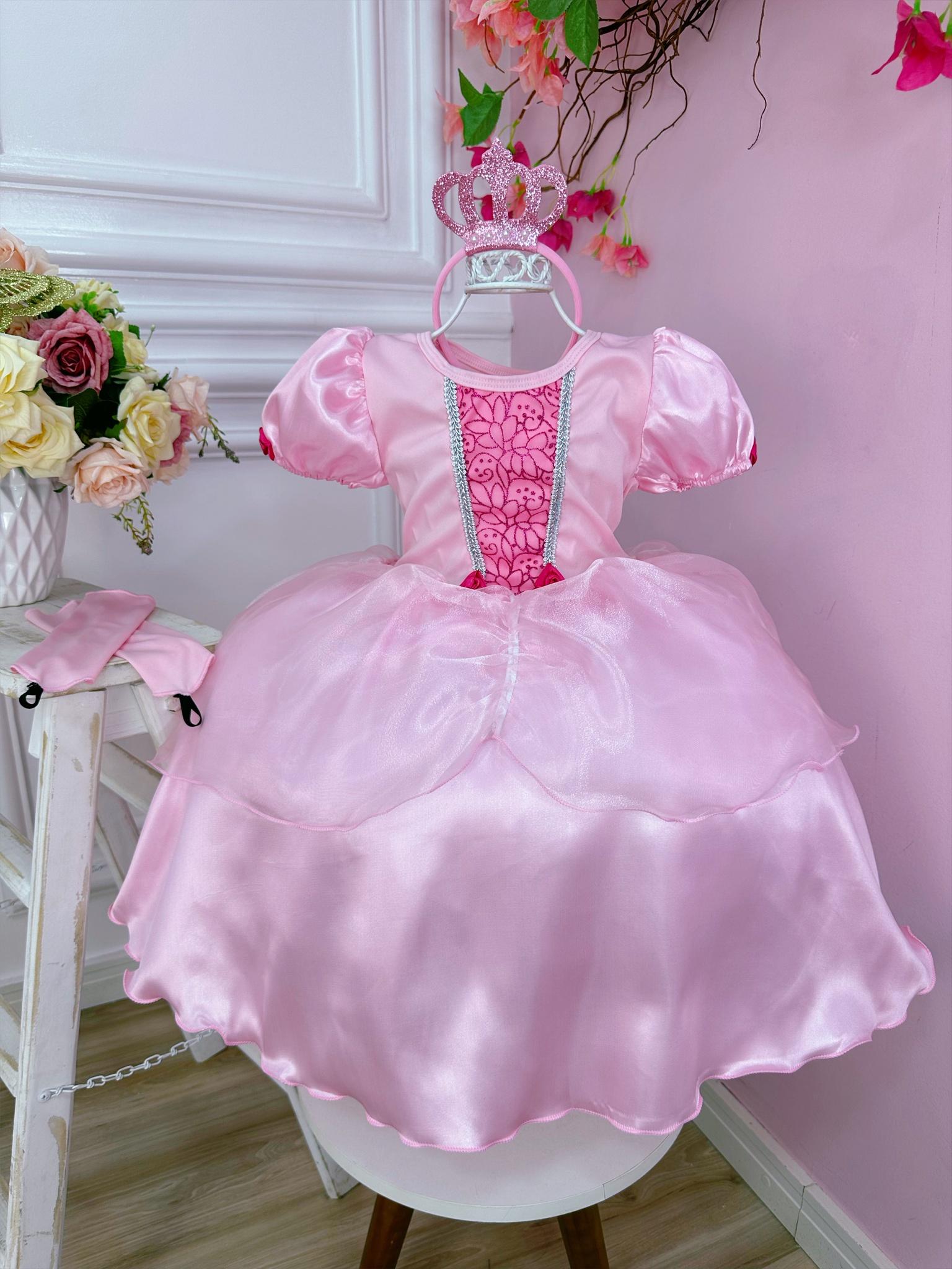 Kit Princesa Fantasia Infantil Aurora Com Luva e Tiara Festa
