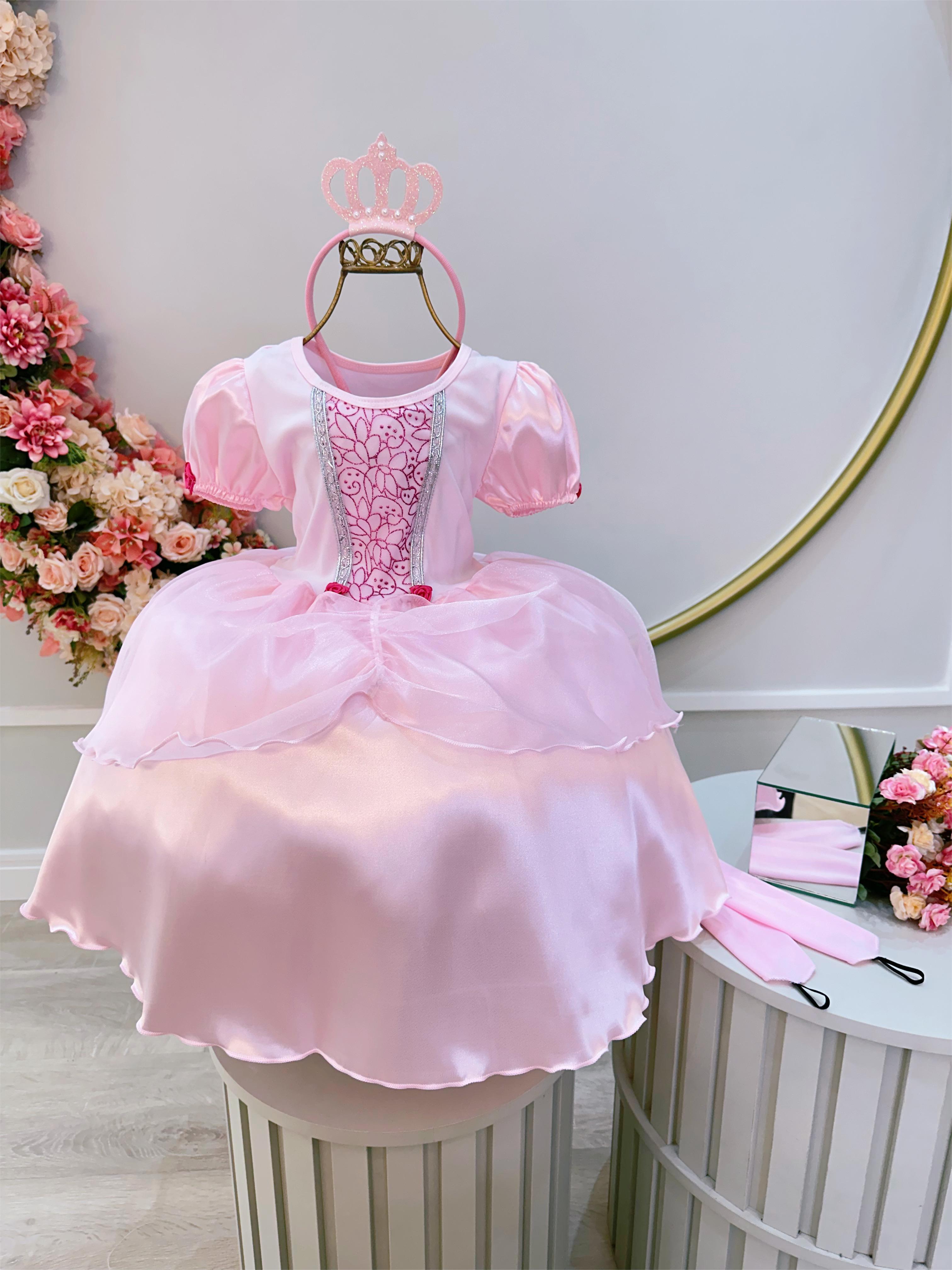 Kit Princesa Fantasia Infantil Aurora Com Luva e Tiara Luxo