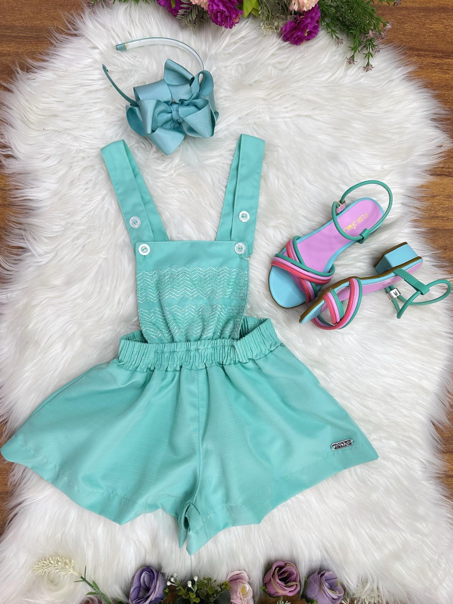 • Macaquinho Infantil Verde Claro Casual Festas Luxo
