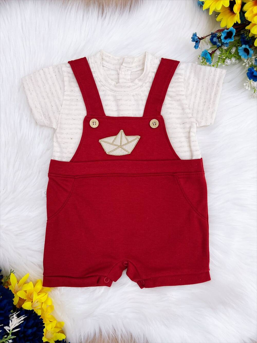 Macaquinho Meninos Fofura Vermelho Listras P/M/G