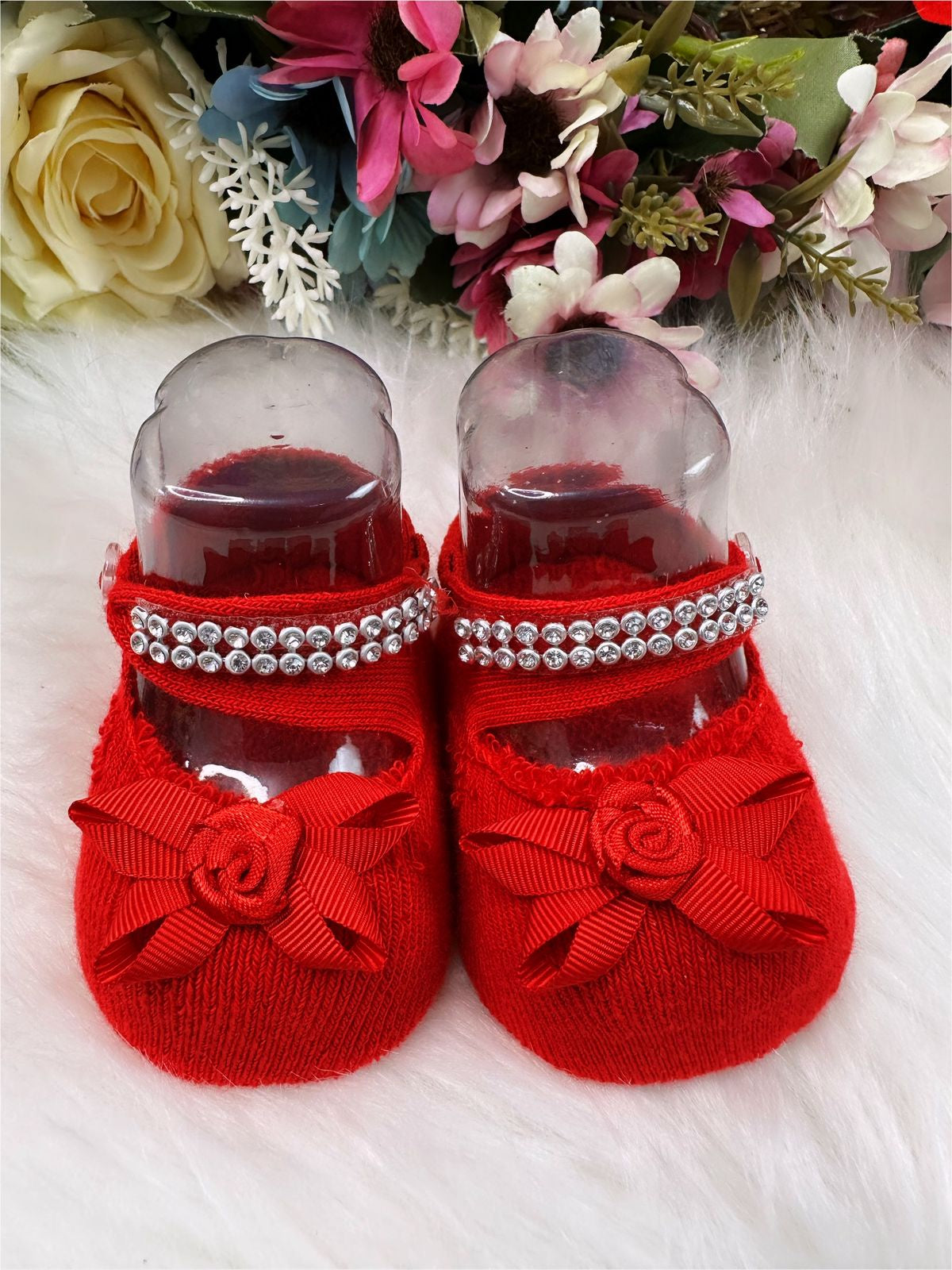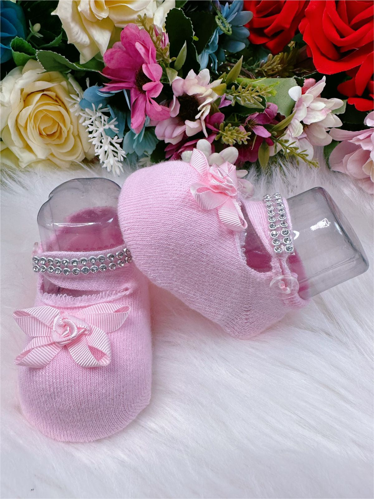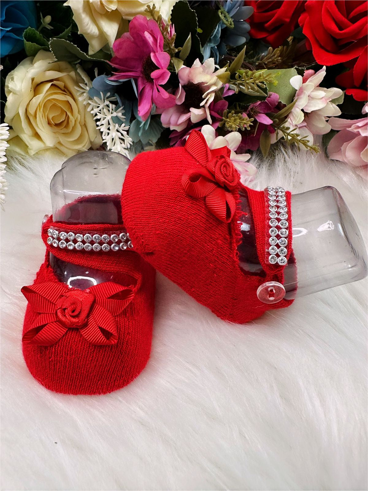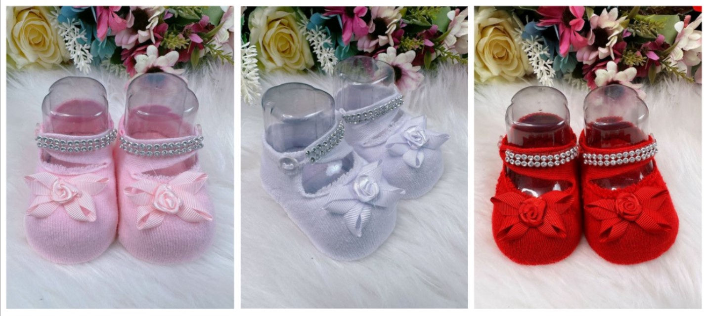 • Meia Sapatinho Recém Nascido Várias Cores Strass 0 A 5 Meses