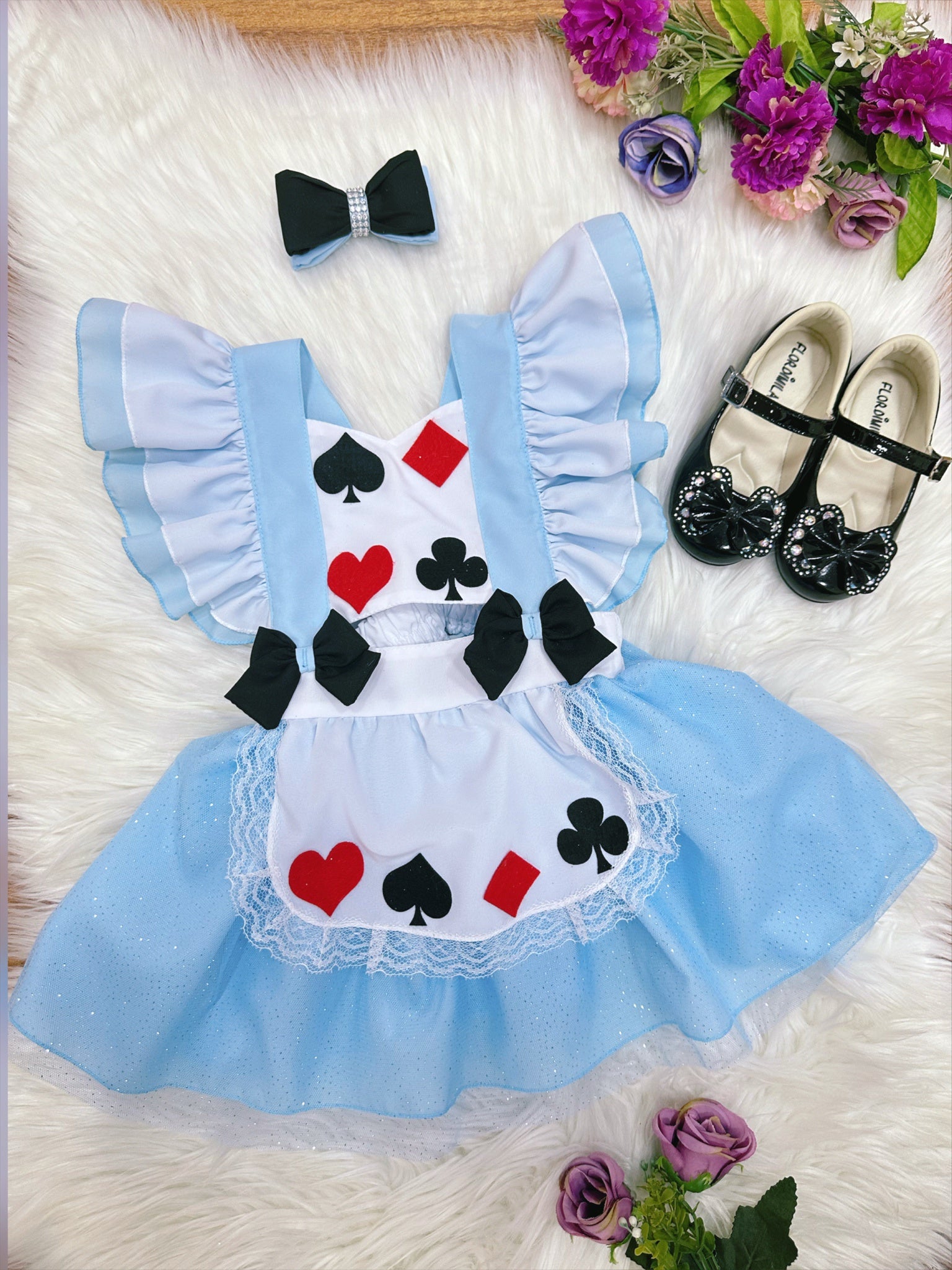 Romper Alice no Pais das Maravilhas Azul Glitter Festas Luxo