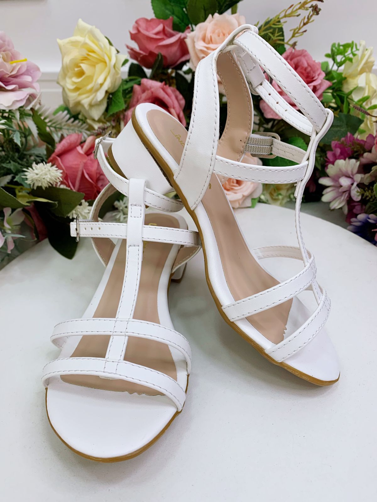 • Sandália Infantil de Tiras Trançadas Branco Com Salto
