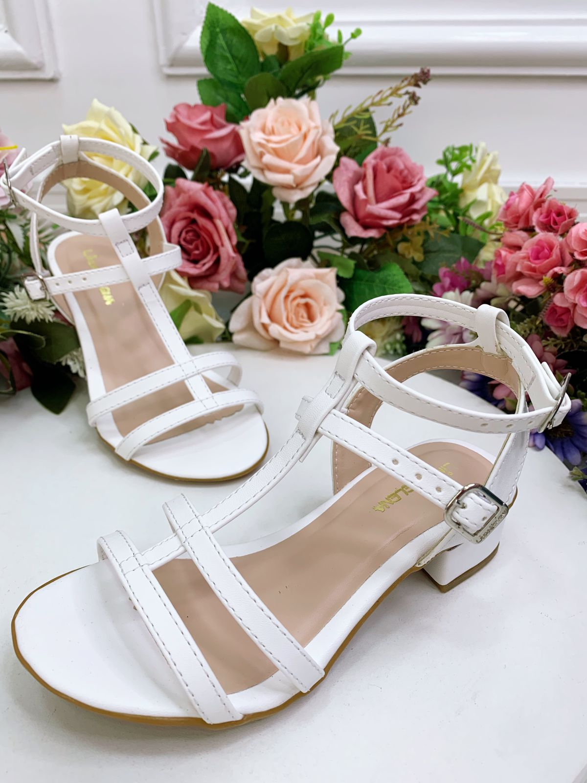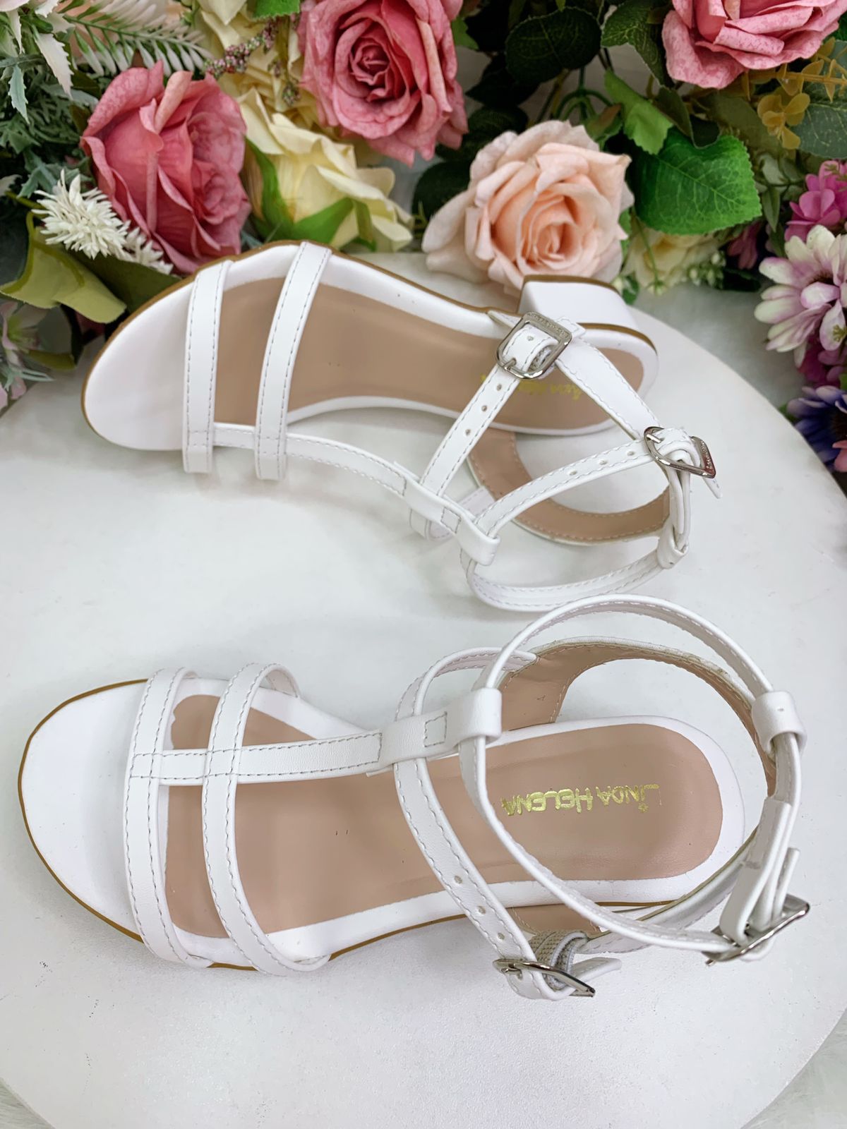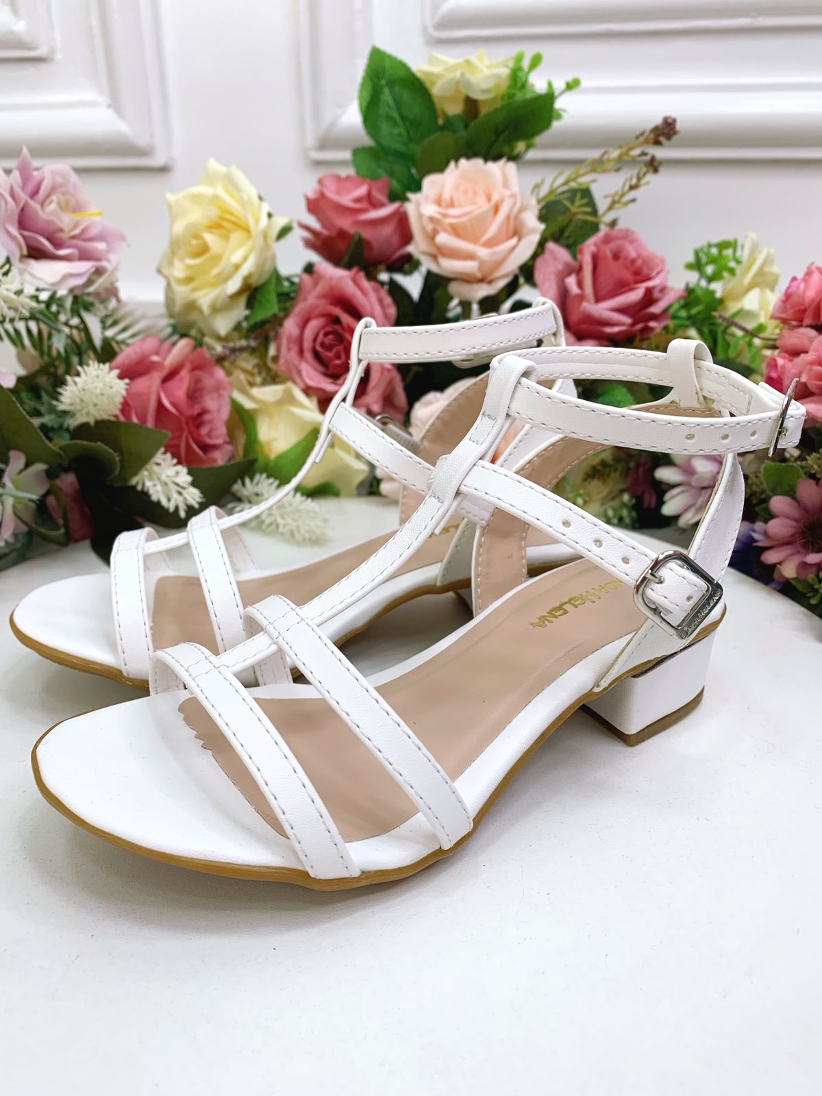 Sandália Infantil de Tiras Trançadas Branco Com Salto