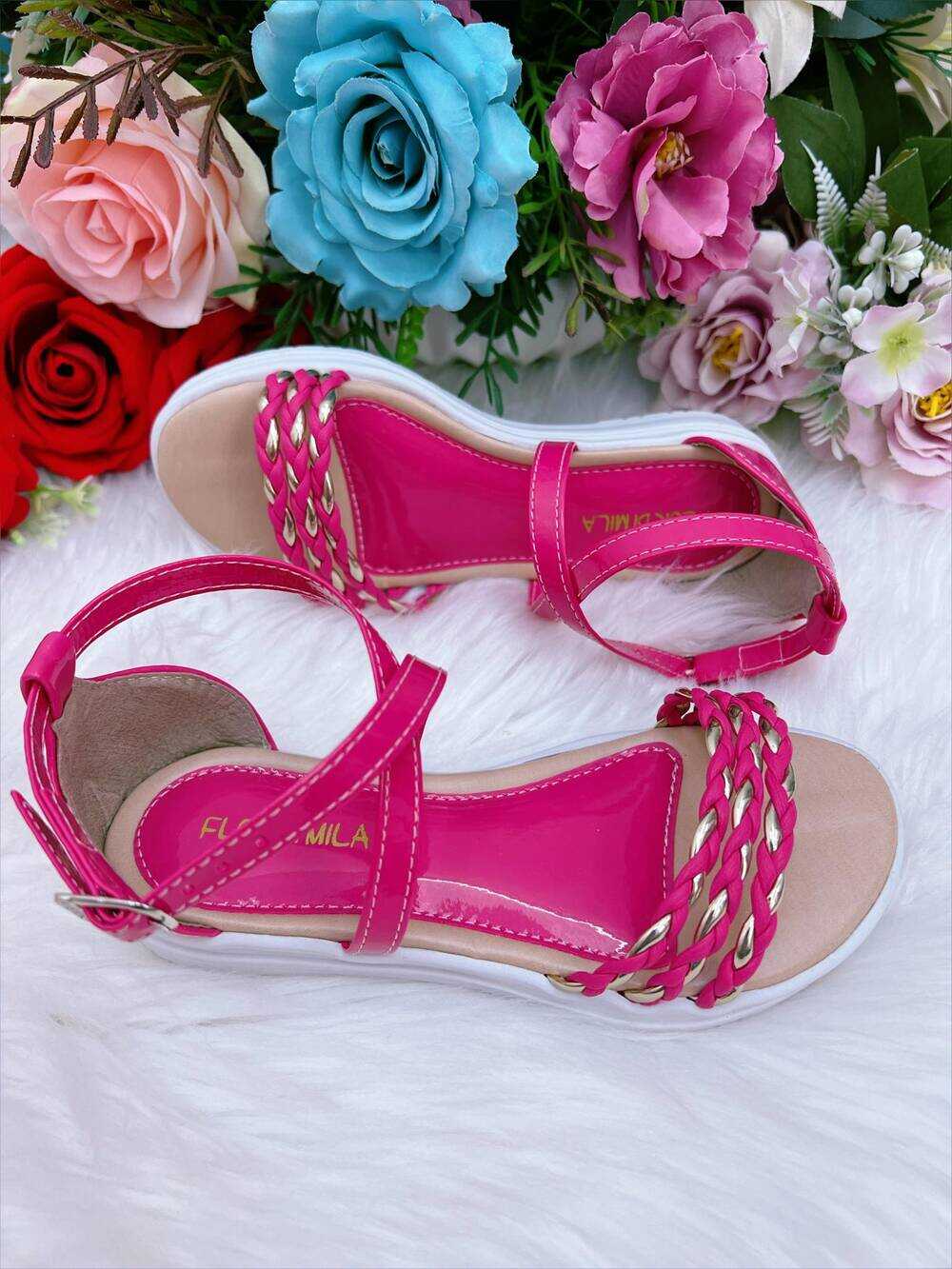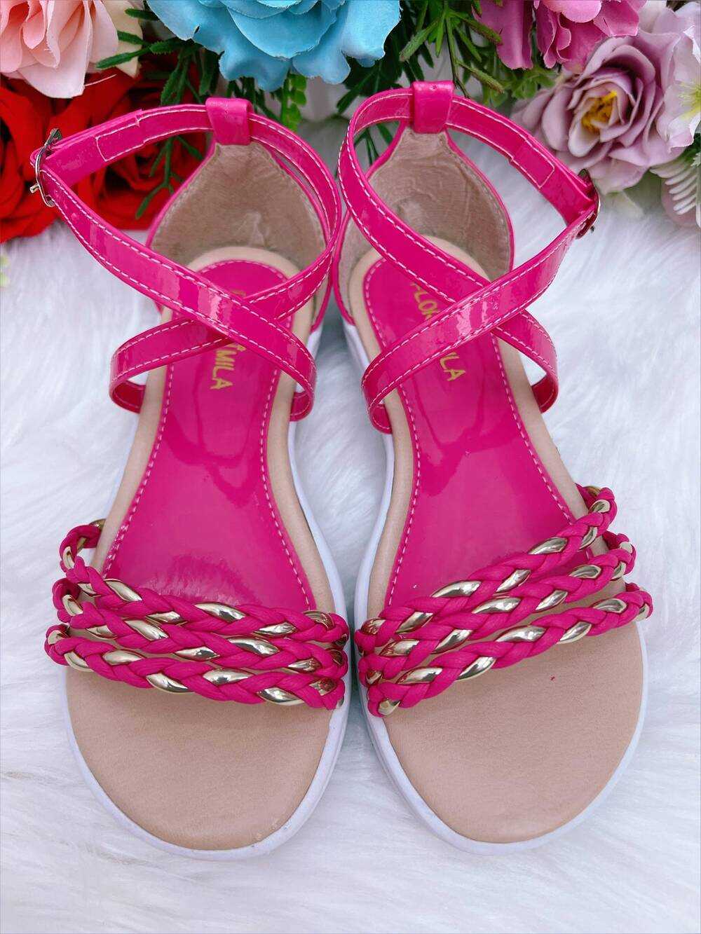 Sandália Infantil Tiras Trançadas Rasteira Pink