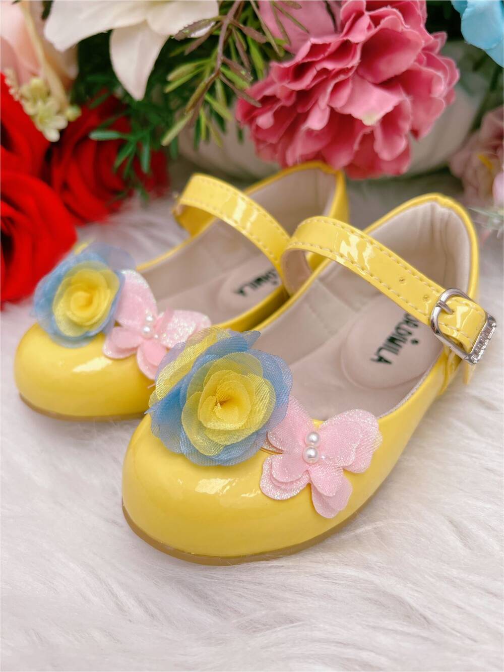 • Sapatinho Amarelo Verniz Aplique Borboleta e Flor
