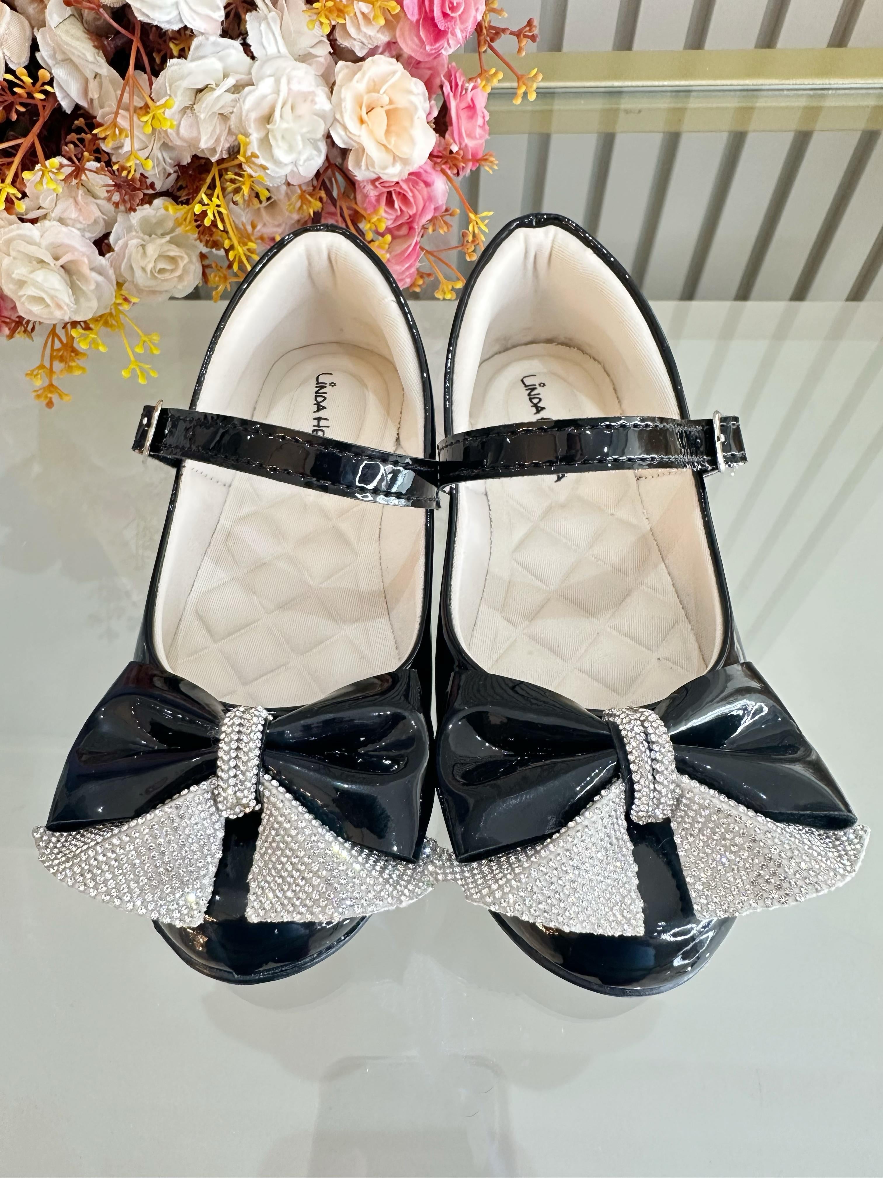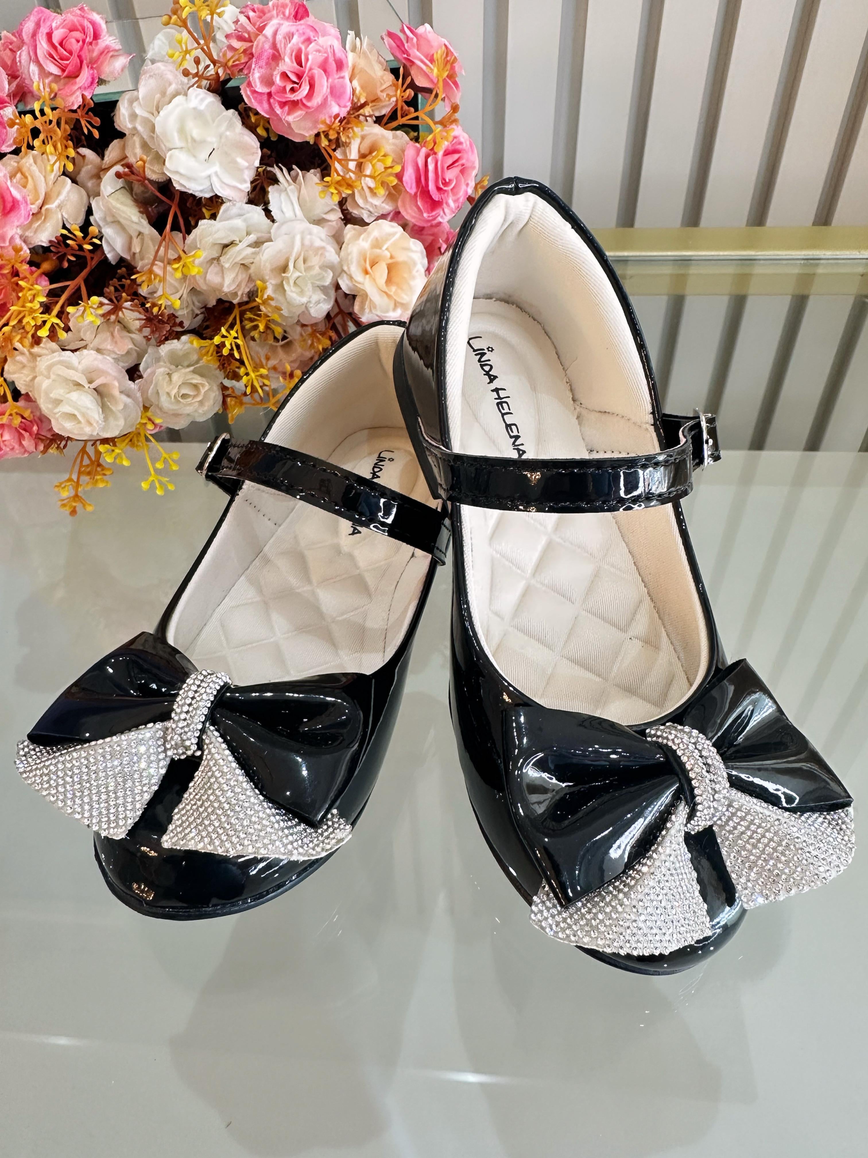 • Sapatinho Infantil Preto Verniz Aplique de Lacinho Com Strass