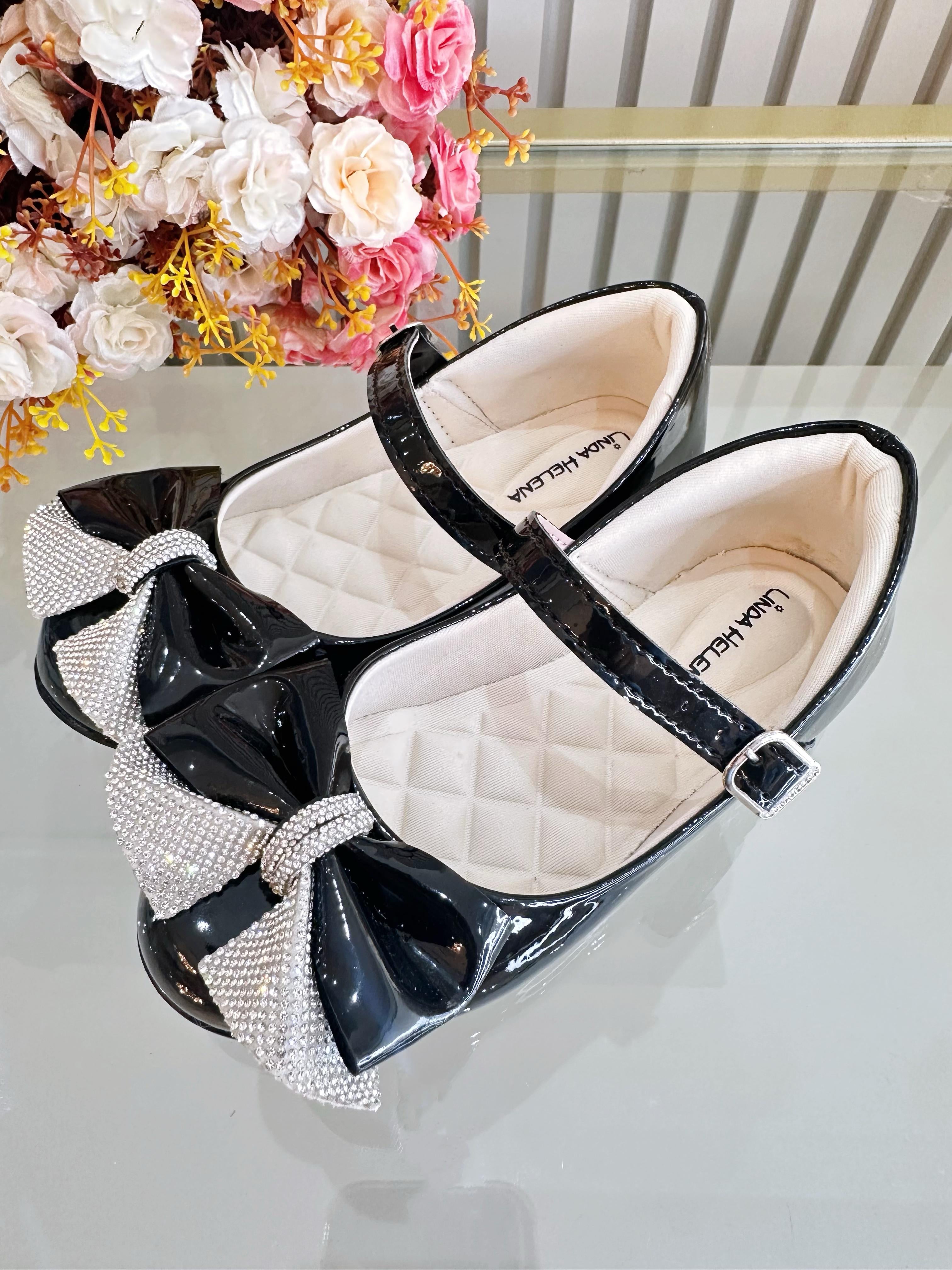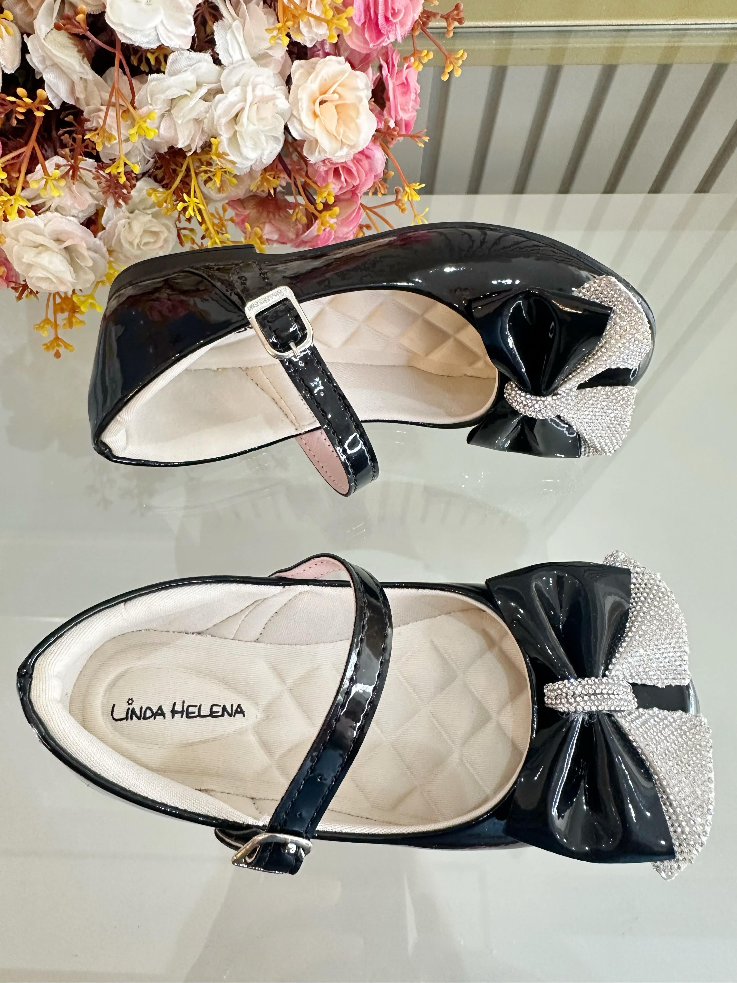 Sapatinho Infantil Preto Verniz Aplique de Lacinho Com Strass