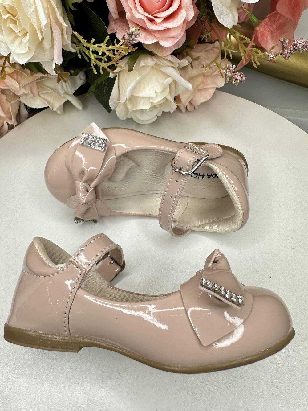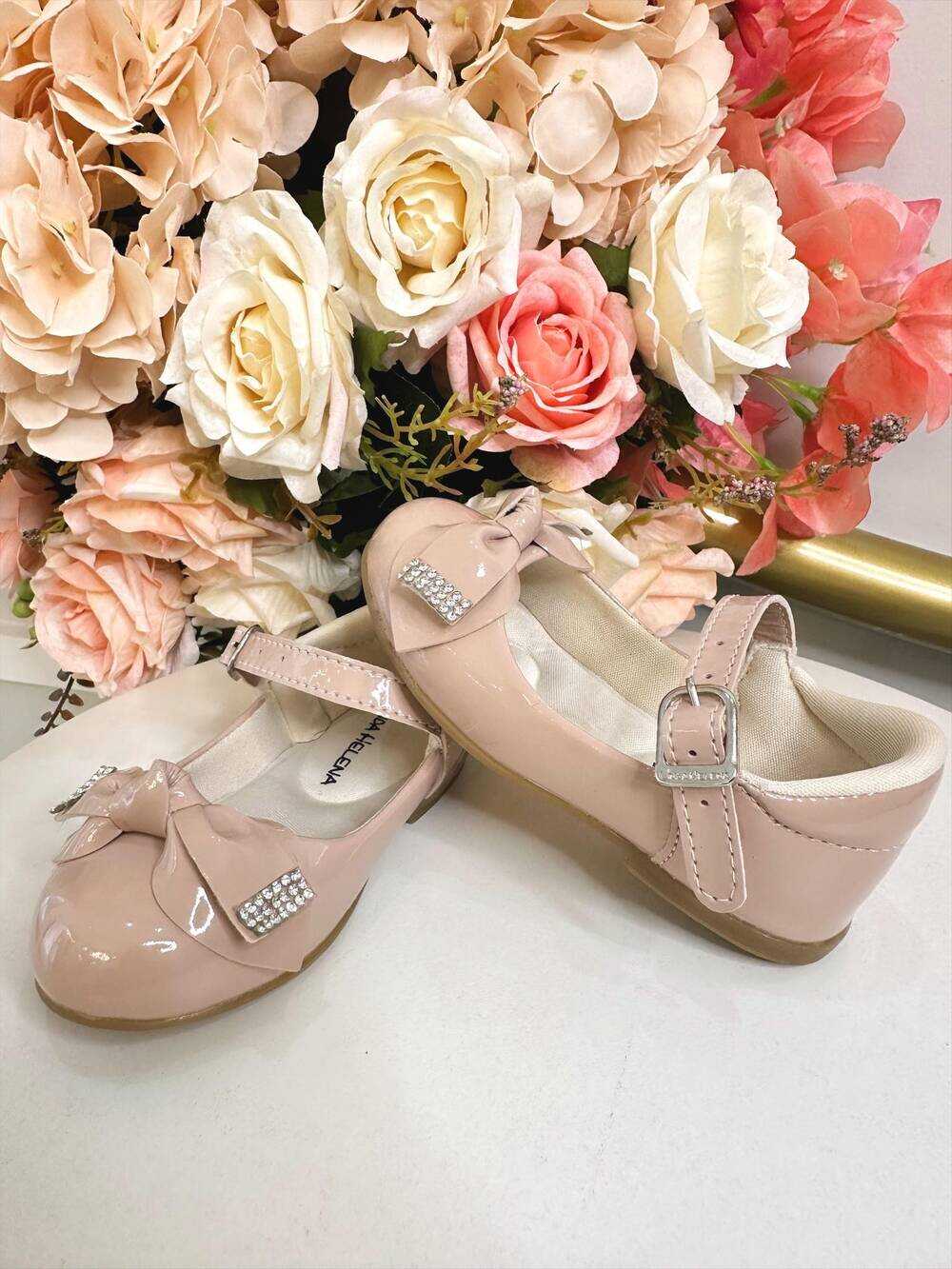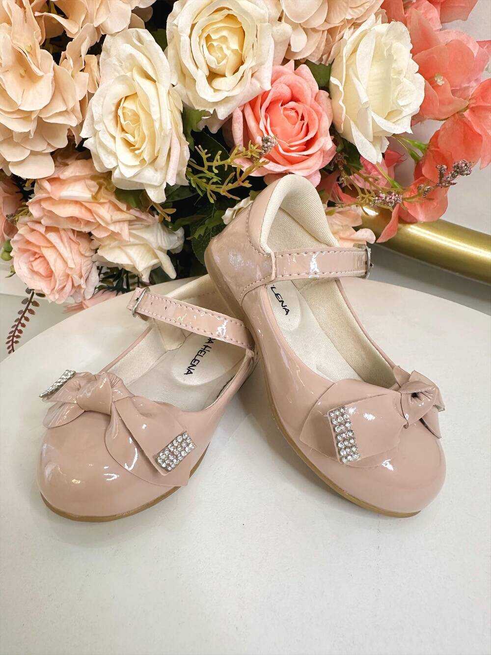 Sapatinho Nude Verniz Com Aplique Lacinho e Strass