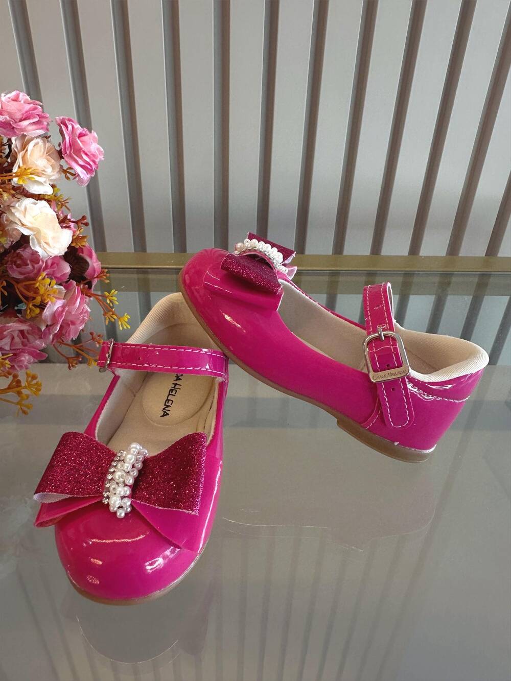 • Sapatinho Pink Verniz C/ Aplique de Lacinho e Strass Glitter