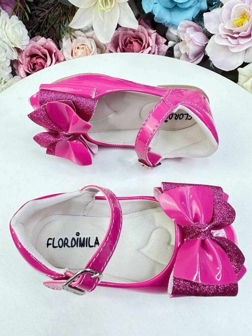 Sapatinho Pink Verniz Com Lacinho e Glitter Super Luxo