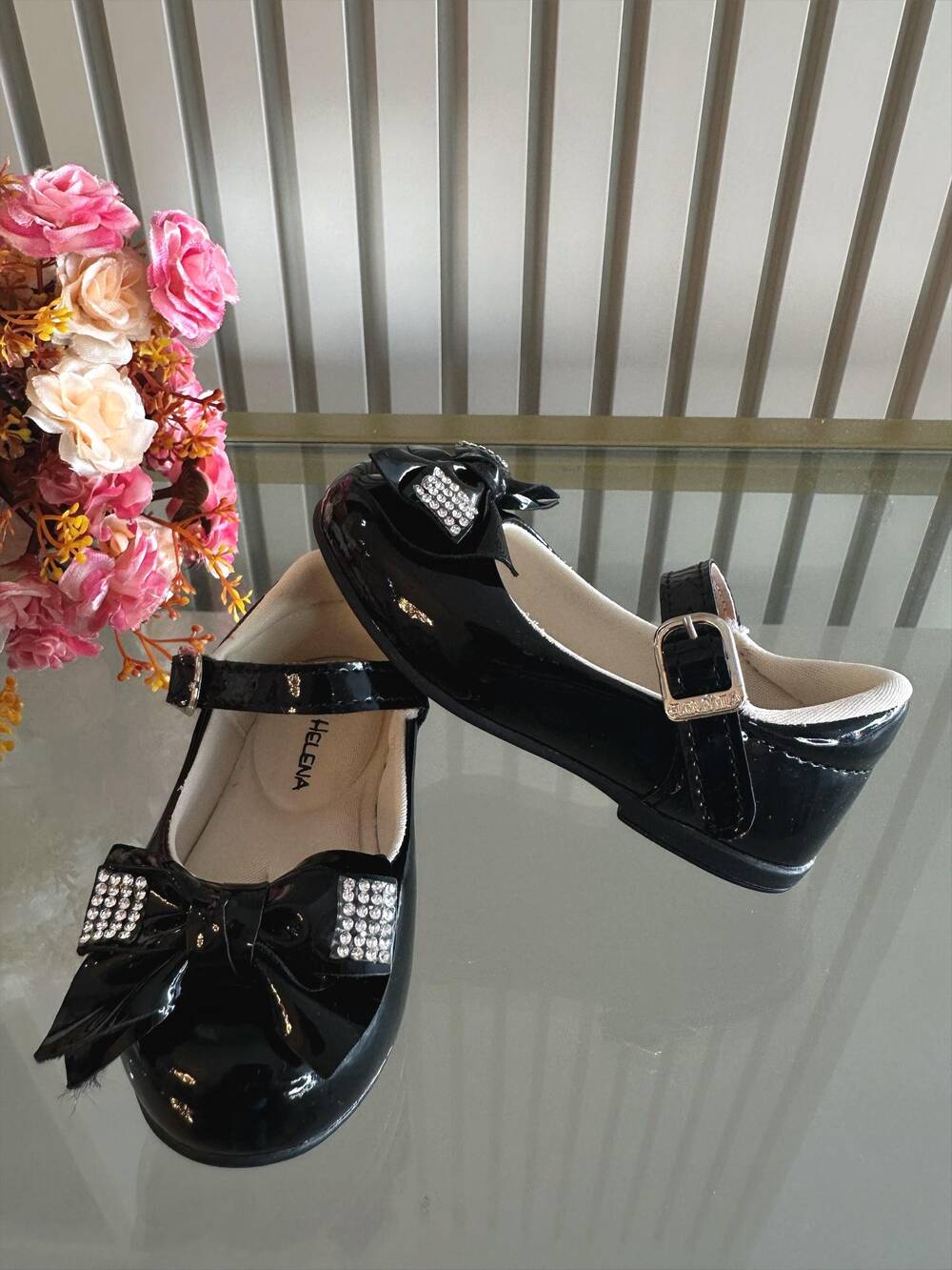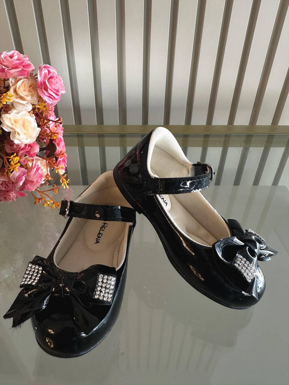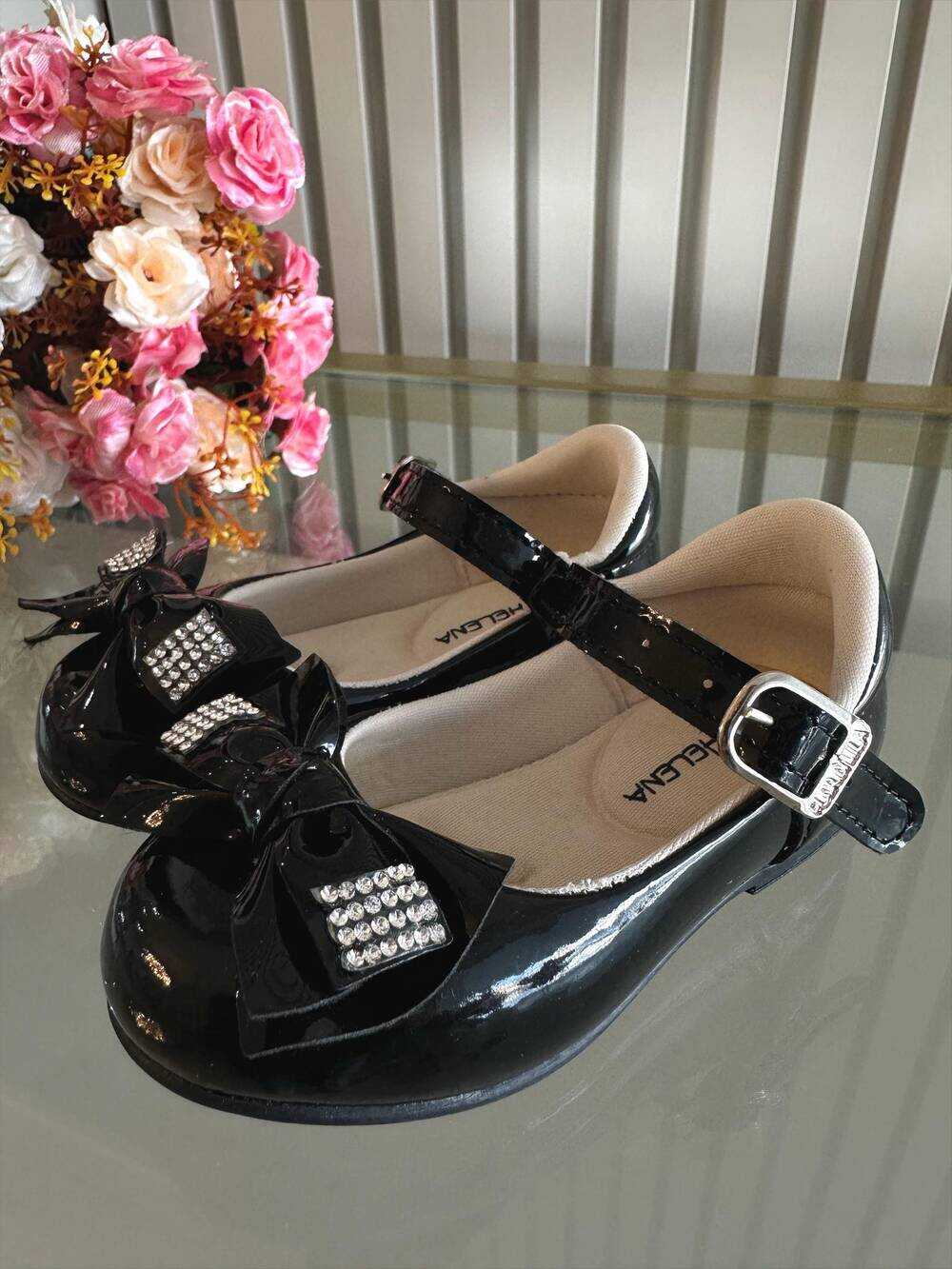 • Sapatinho Preto Verniz C/ Aplique de Lacinho e Strass