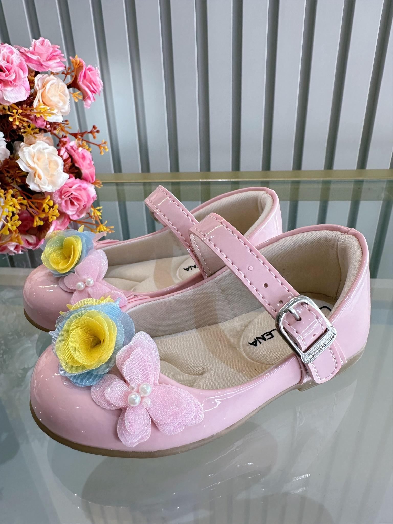 • Sapatinho Rosa Verniz C/ Aplique Borboleta Flor