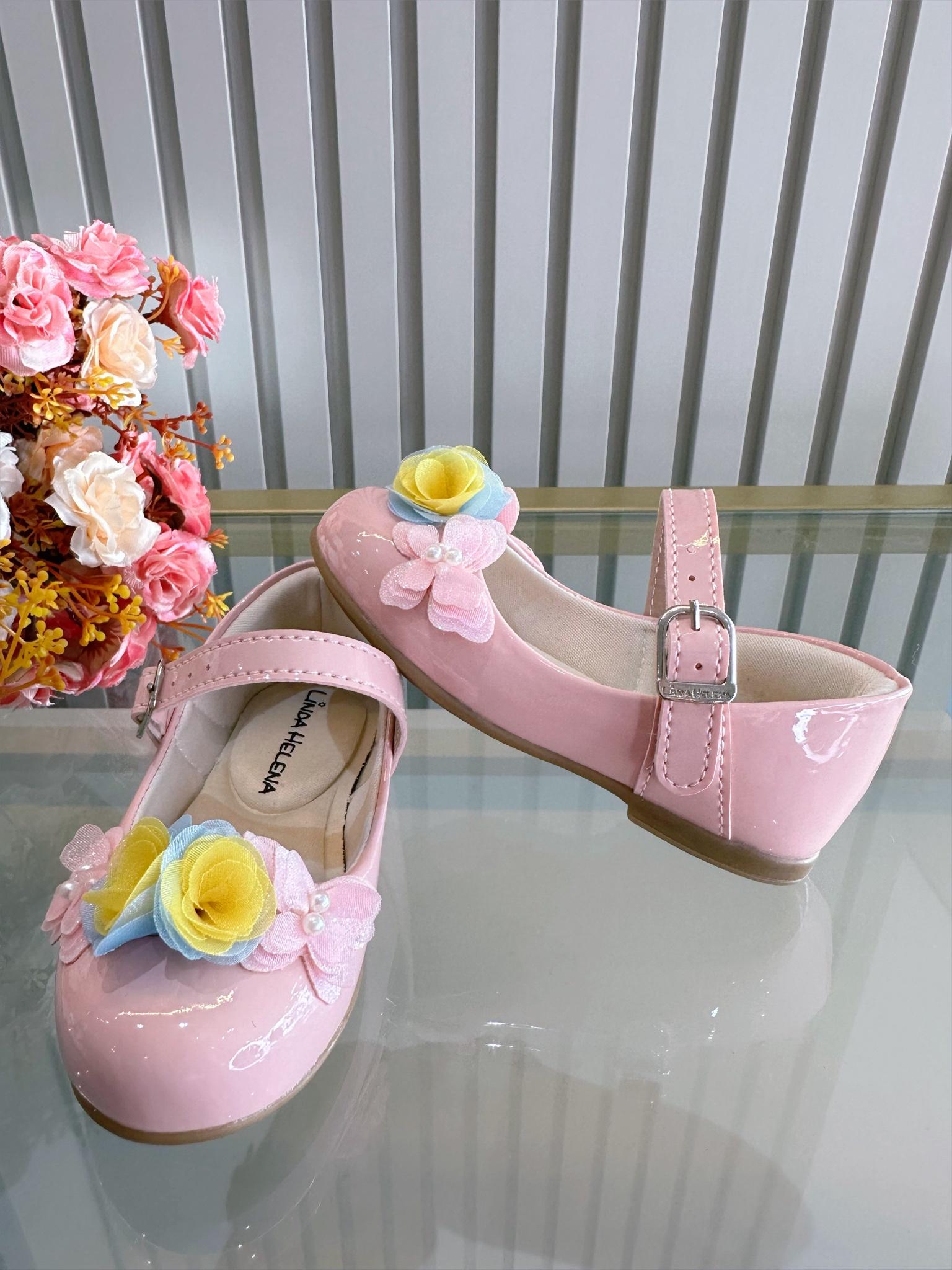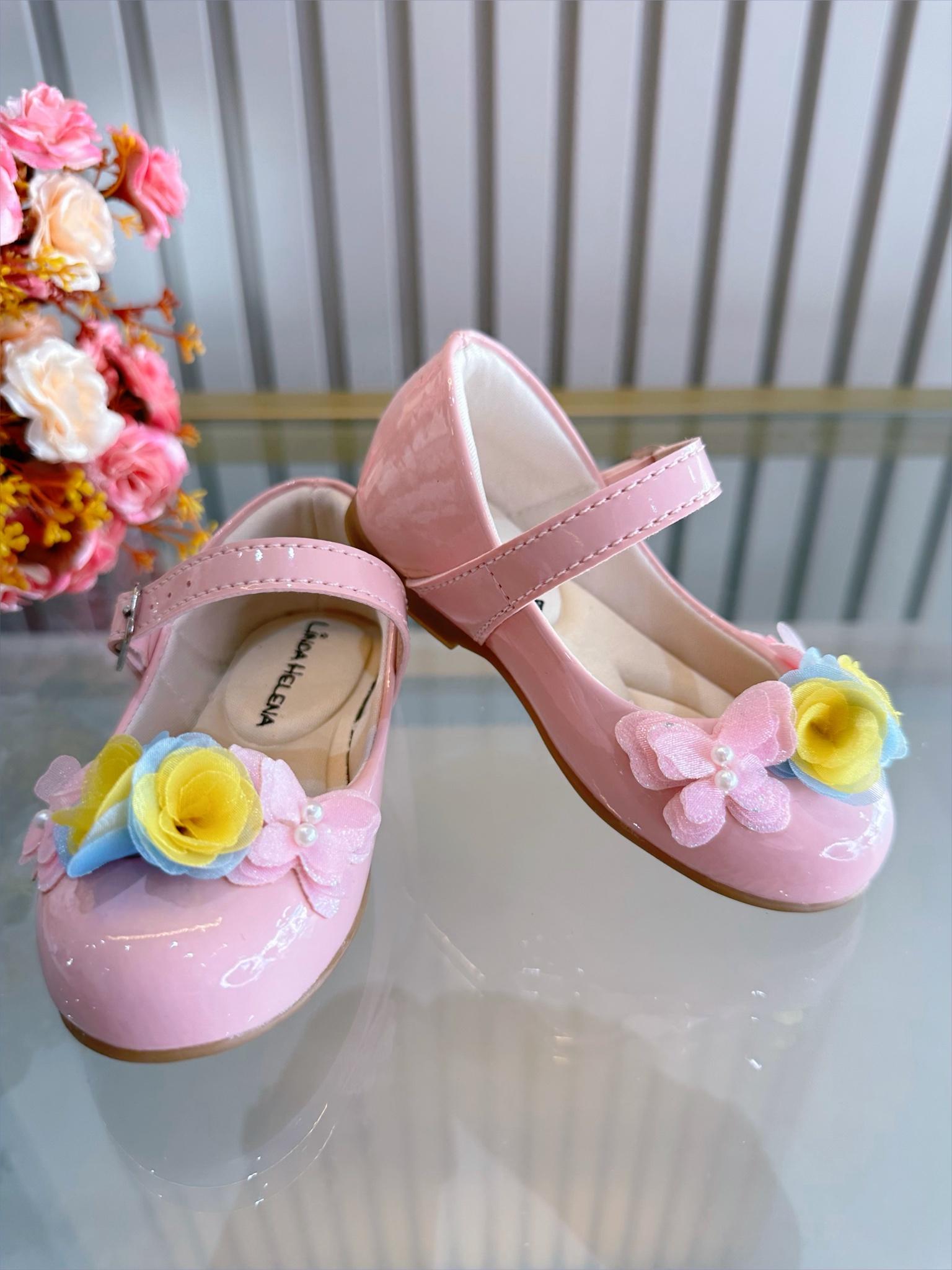 Sapatinho Rosa Verniz C/ Aplique Borboleta Flor