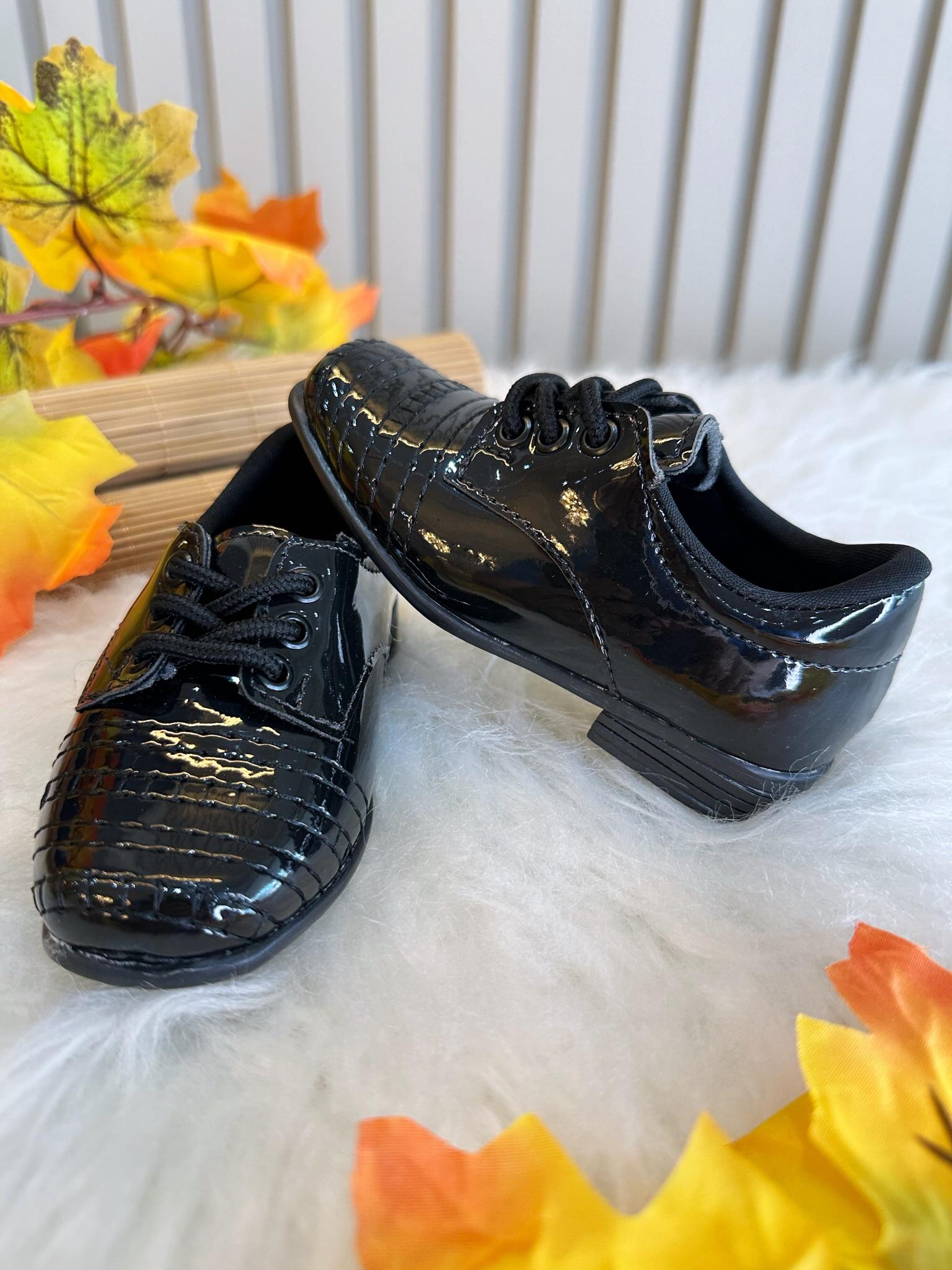 • Sapatinho Social Preto Verniz C/ Cadarço Para Meninos