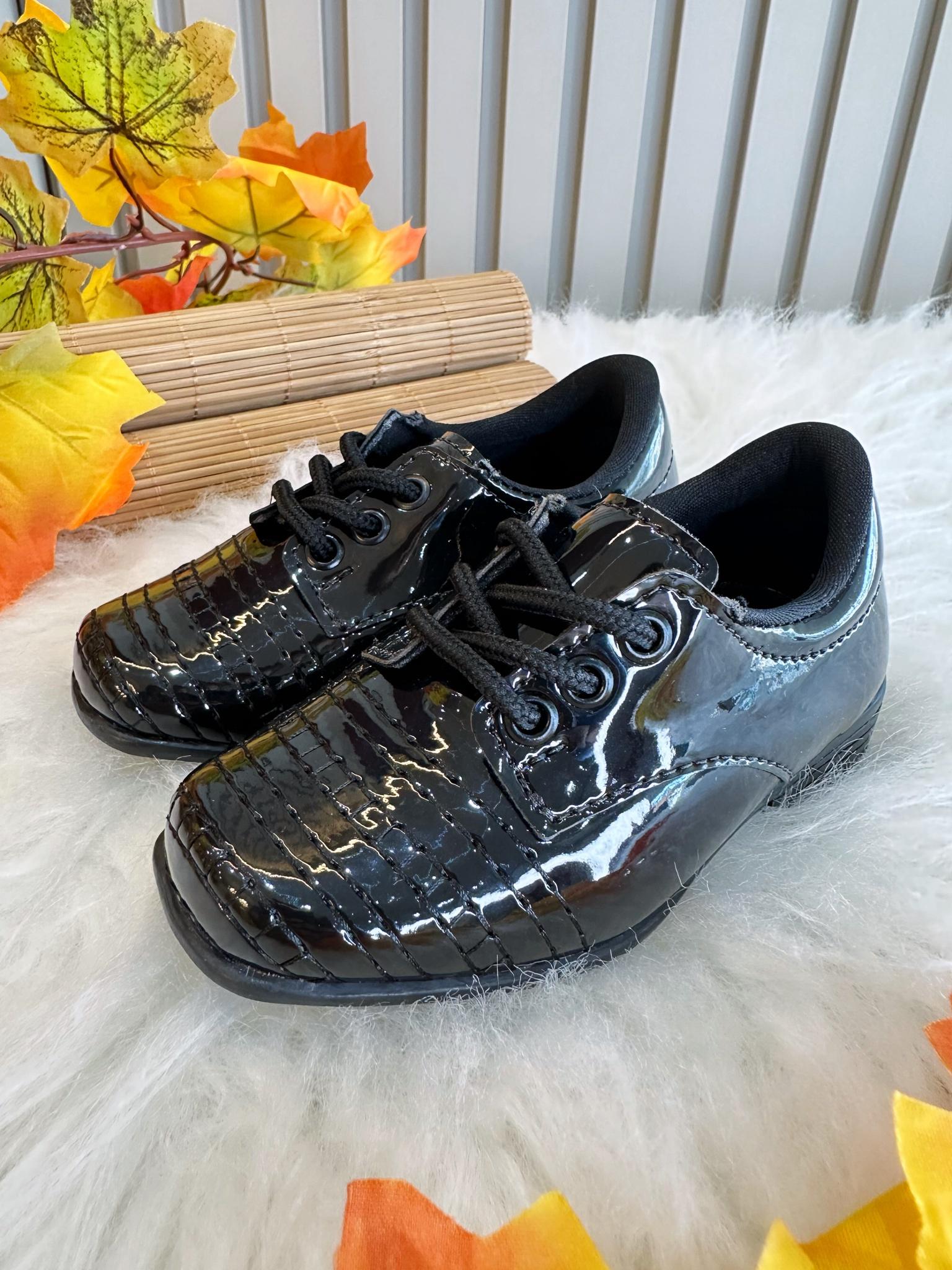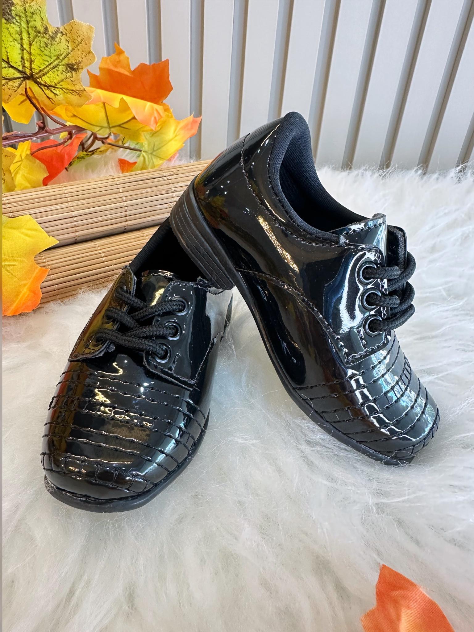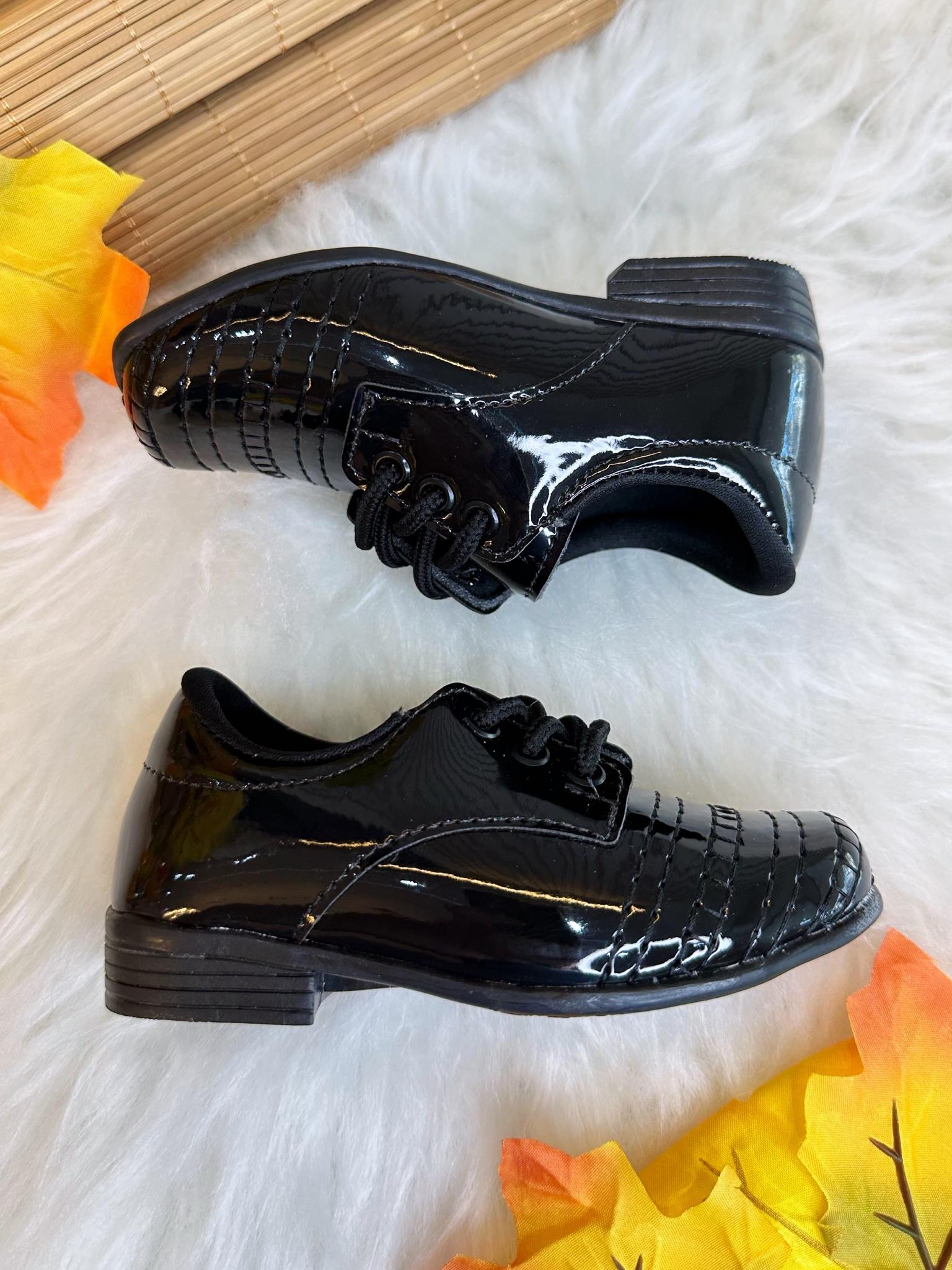 Sapatinho Social Preto Verniz C/ Cadarço Para Meninos
