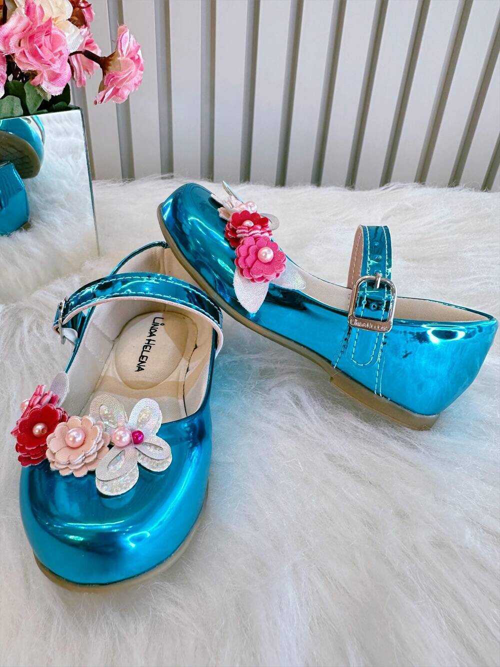 • Sapatinho Turquesa Metalizado Jardim Encantado Luxo