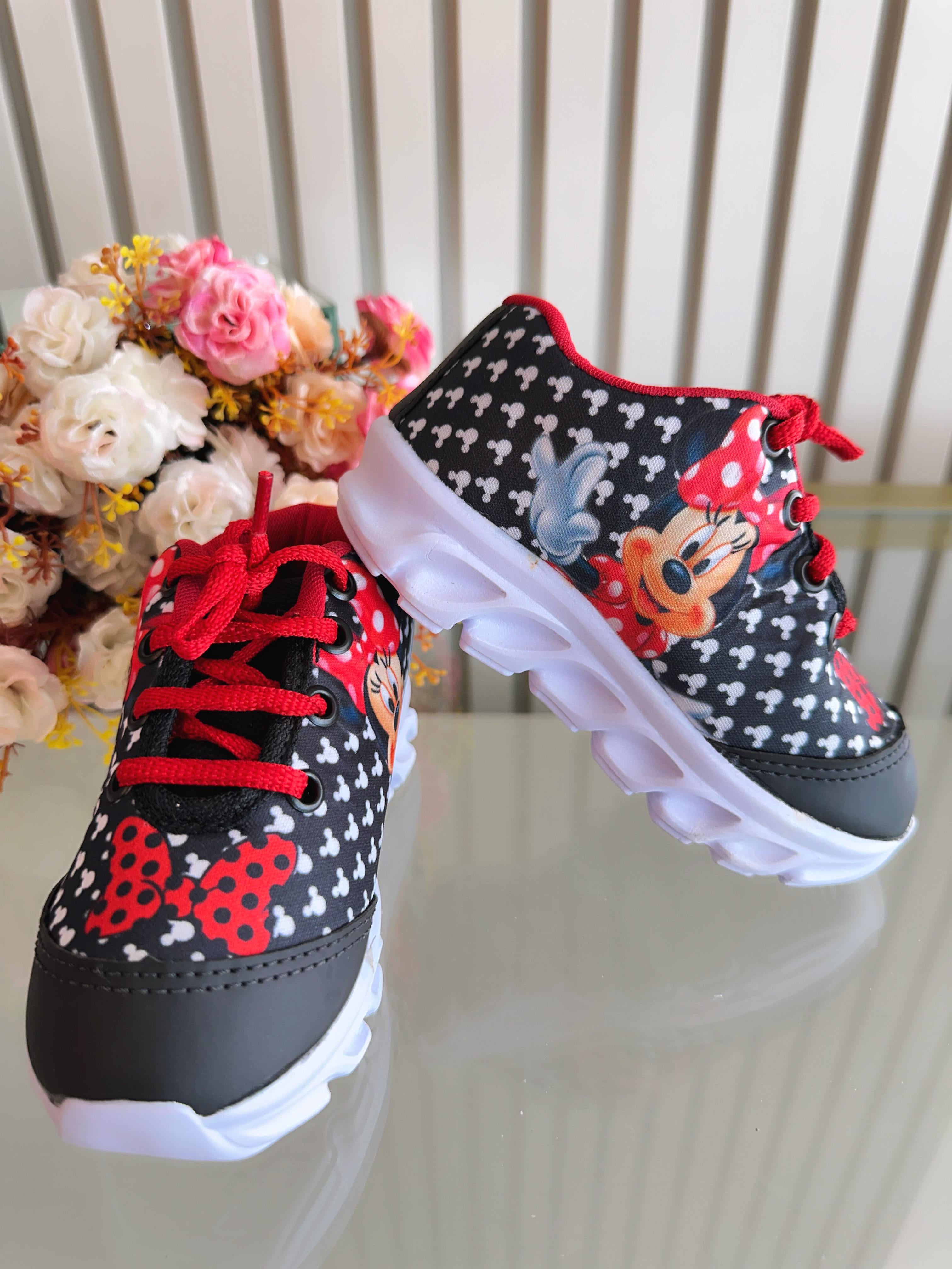 • Tênis Meninas Temático Minnie Preto Com Leds