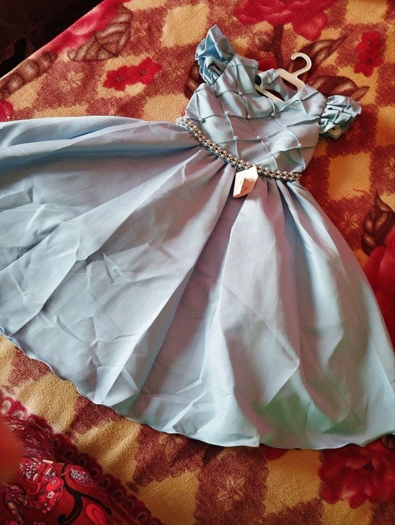 Vestido Infantil Azul Claro Busto Nervura Com Pérolas Festas