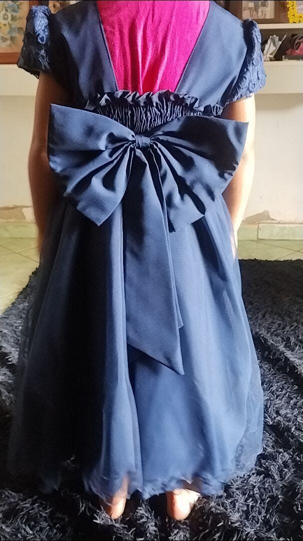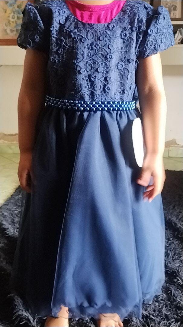 • Vestido Infantil Azul Marinho Busto C/ Renda Festa Casamento