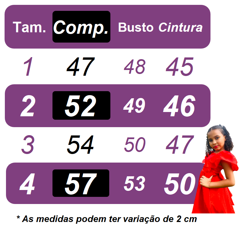 * Compare as medidas da criança com as medidas da tabela que está nas fotos, não compre pela idade, e sim pela tabela de medidas;