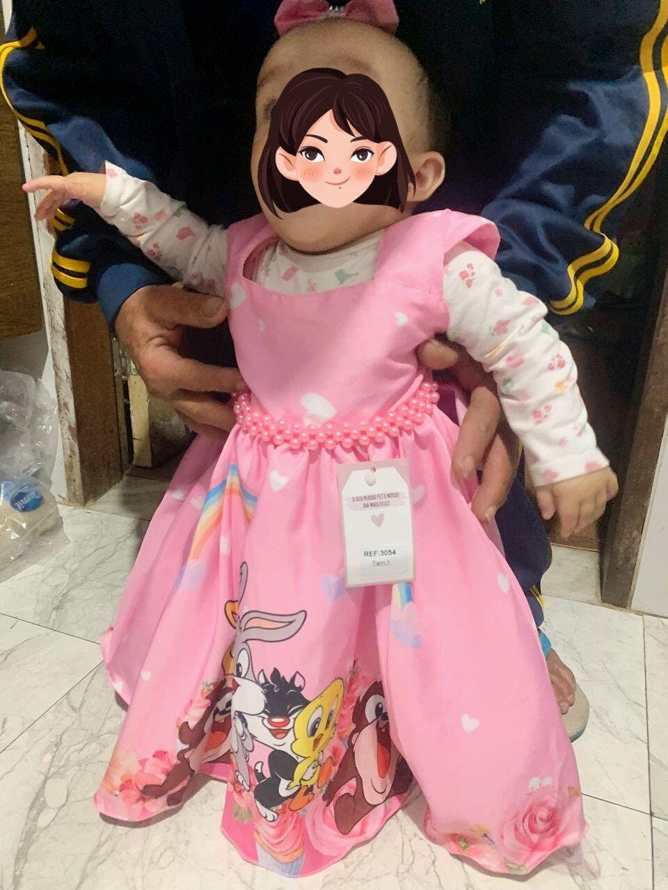 Visual sugerido:o vestido e lindo, ela vai usar na festa dela de 1 aninho