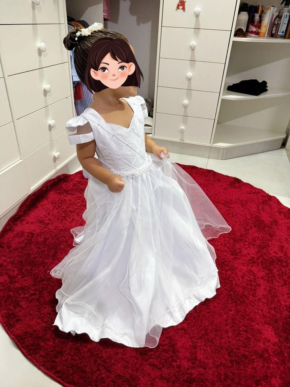• Vestido Infantil Branco C/ Busto Nervura Cinto Pérolas Damas
