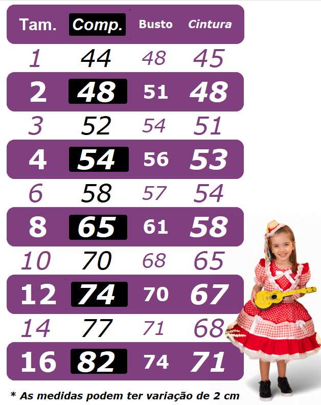 1 - Compare as medidas da criança com as medidas da tabela, não compre pela idade, e sim pelas medidas.