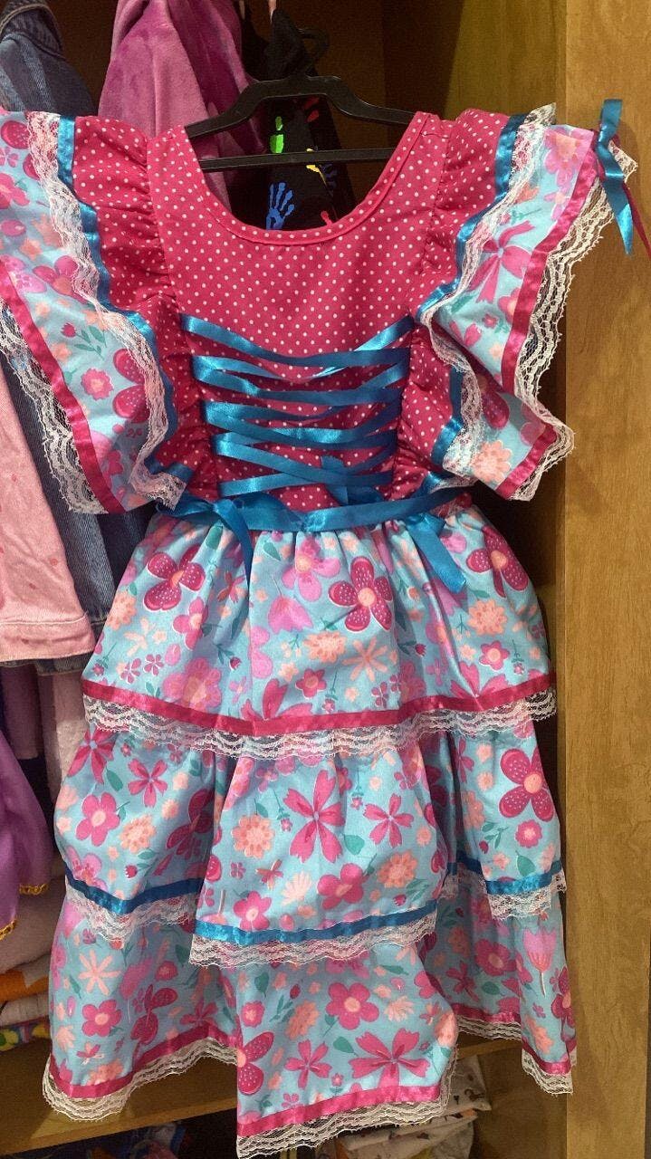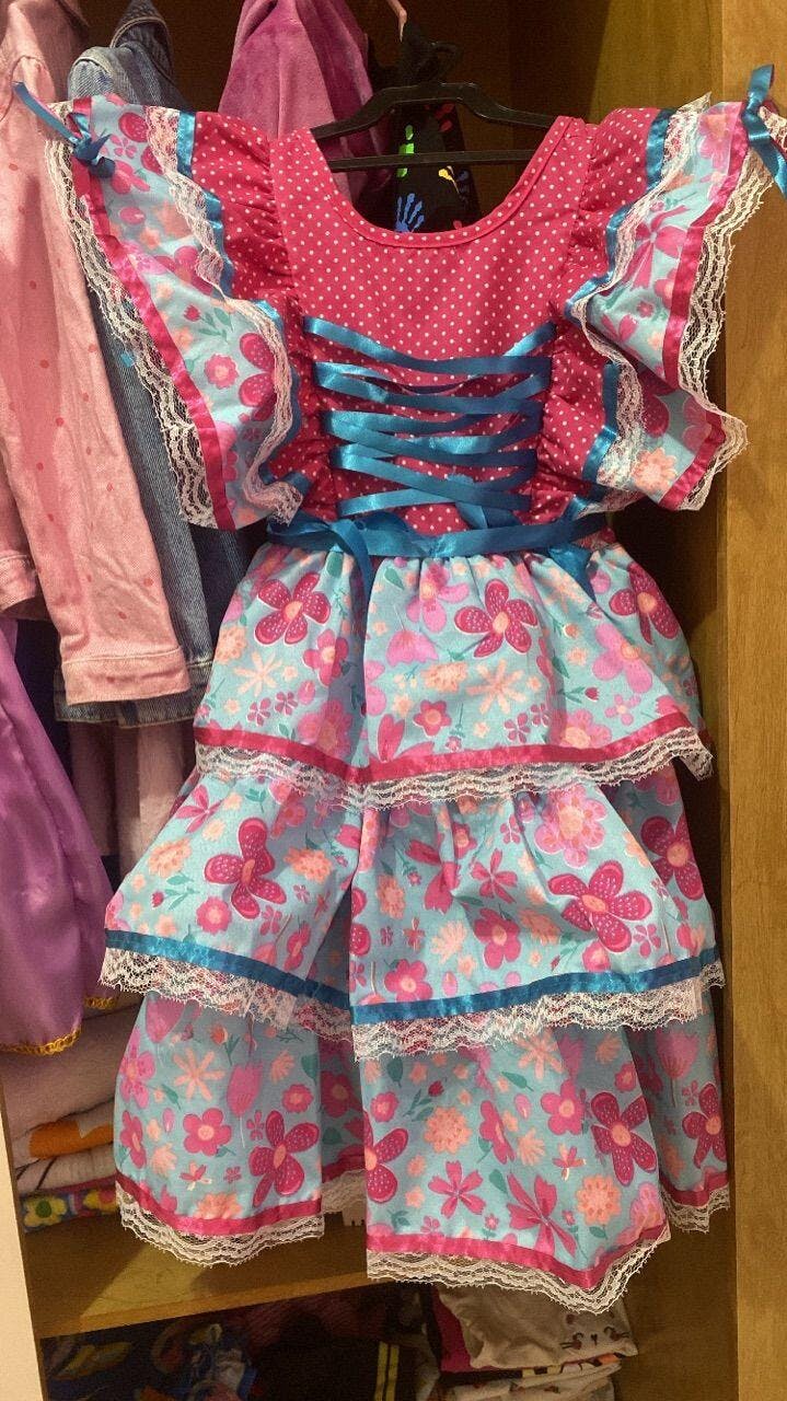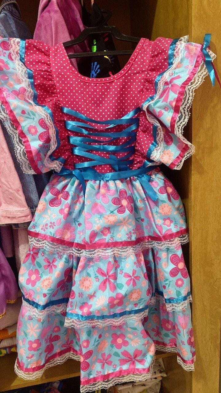 Vestido Infantil Junino Festa Caipira Pink e Azul Florido