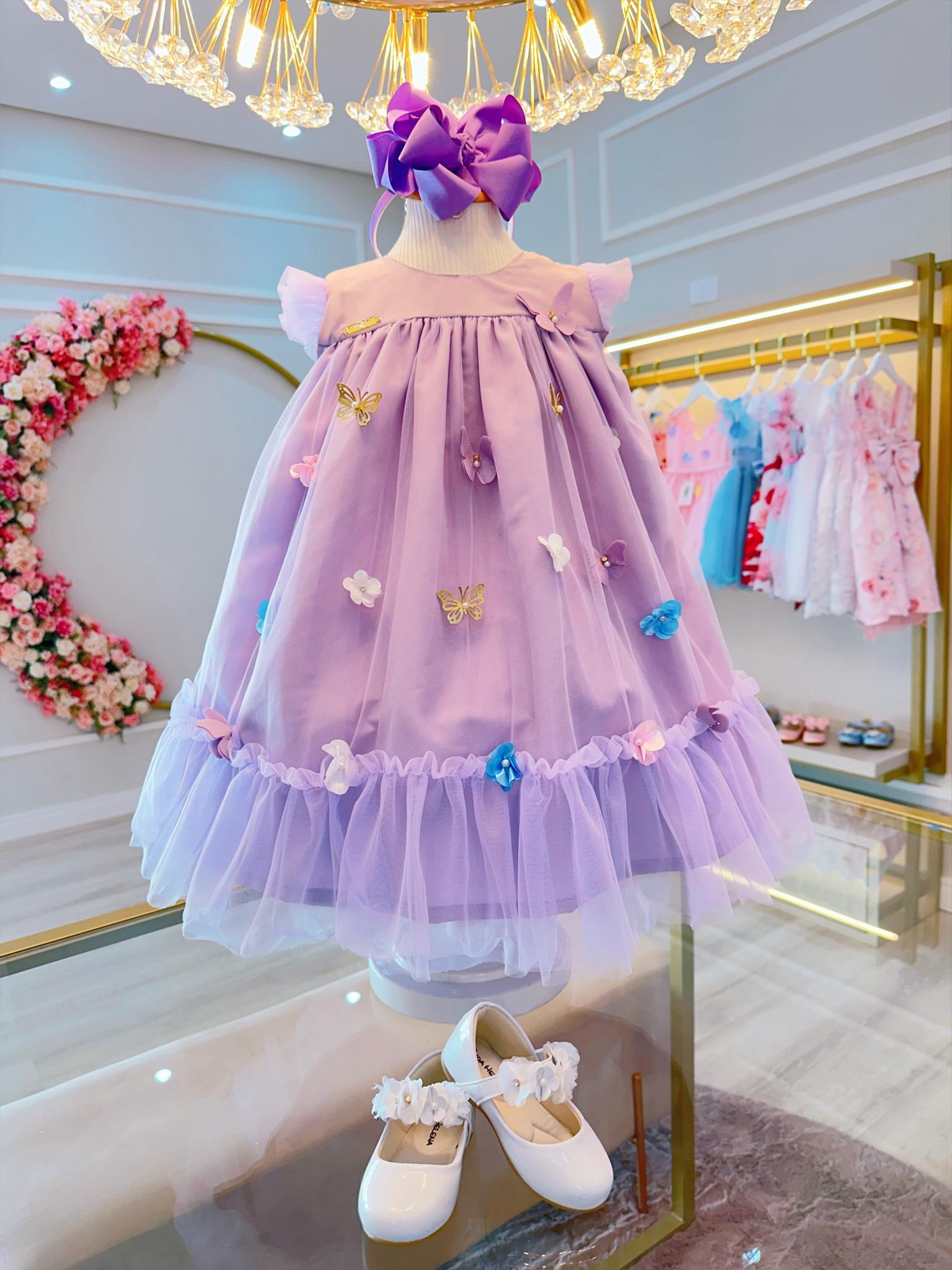 Vestido Infantil Lilás Jardim Encantado Luxo