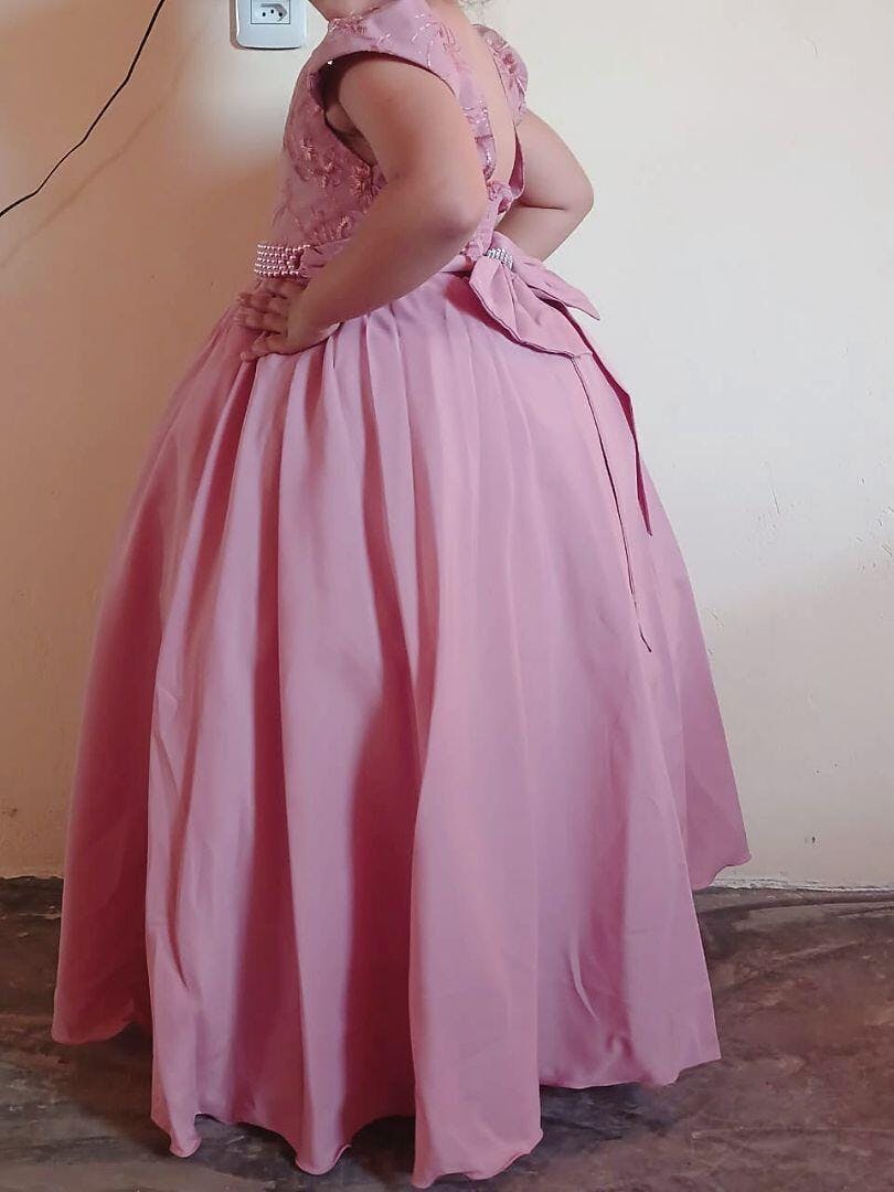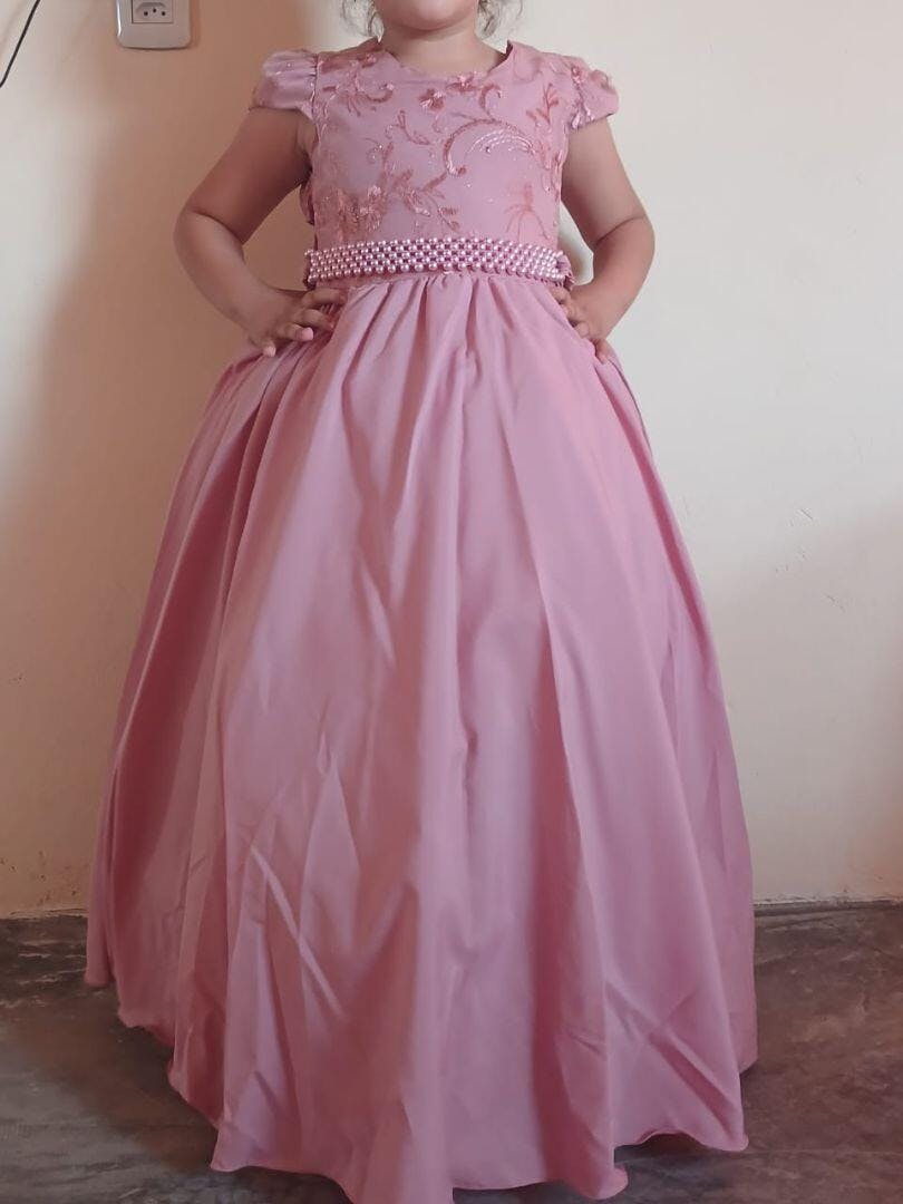 Vestido Infantil Longo Rose Busto C/ Renda Casamentos Luxo