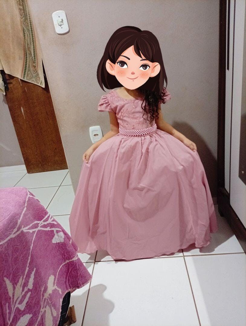 Amei minha filha tem 4 anos e 9 meses comprei tamanho 8 serviu como eu queria ficou arrastando no chão mais quando colocar a armação ficará perfeito muito satisfeita comprem sem medo