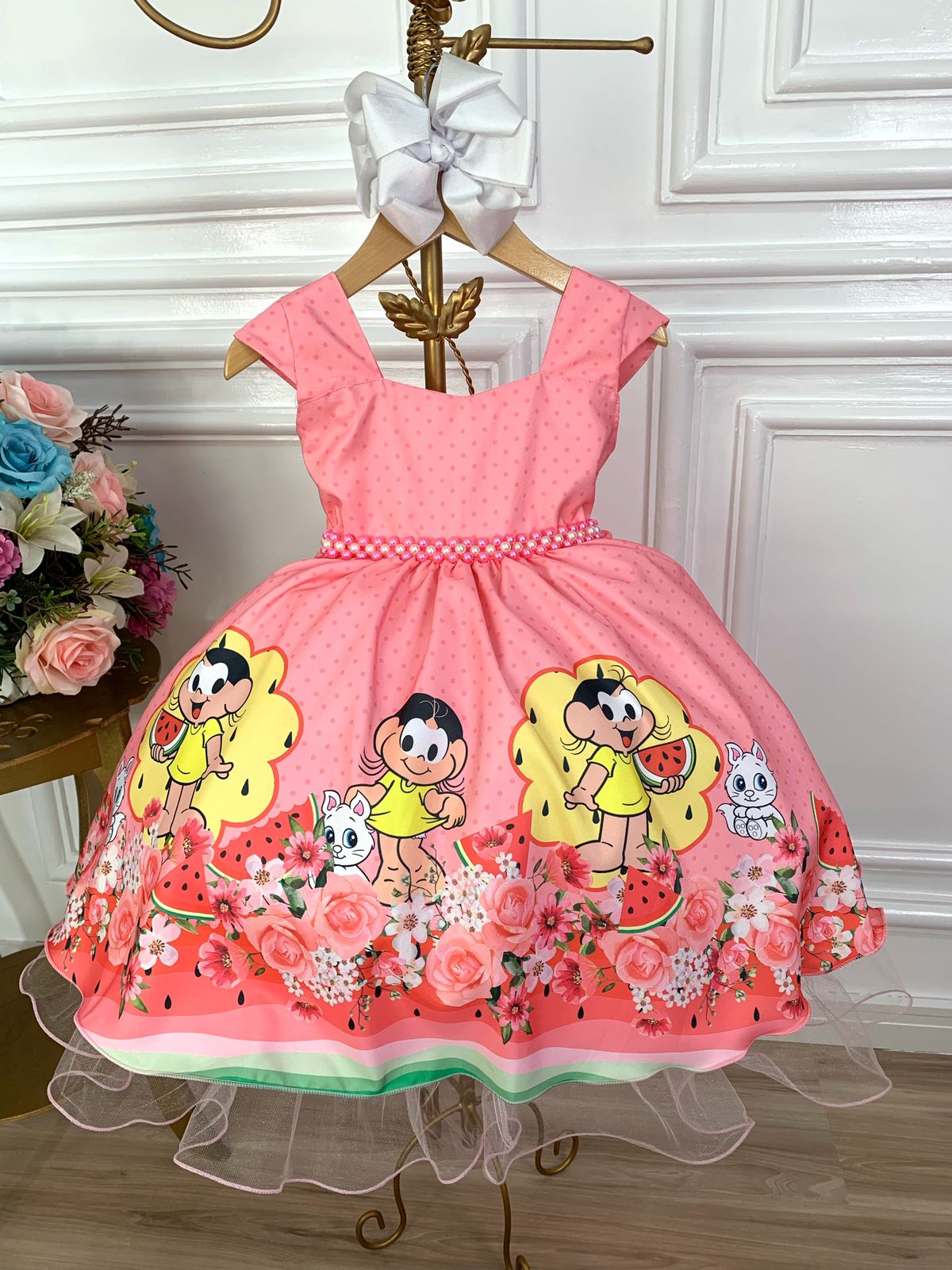 Vestido Infantil Magali Rosa Chiclete Flores Festa Luxo
